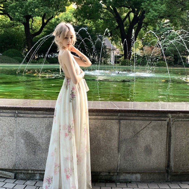 クーポン配布中!実質送料無料になる800円OFFクーポン!決済前にクーポンコード:GALFS800を入力してお得にGetしてね! リゾートシーンに映える、 フレンチムード漂うフラワープリントのロングワンピース。 デコルテを美しく見せるVネックデザインと、 さりげなく背中を開けたバックオープン仕様で、 抜け感のある大人フェミニンな印象に仕上げました。 ウエスト部分はゴム仕様になっており、 締め付け感が少なく、自然にウエストラインをマーク。 歩くたびに揺れるフレアシルエットが、 体型をやさしくカバーしつつ女性らしさを引き立てます。 海辺や旅行先での着用はもちろん、 写真映えもするため、リゾート・お出かけ・夏のデートにもおすすめの一枚です。 カラー ・フラワー柄(画像色) 素材 ・ポリエステル ・軽やかな織り素材 ・さらっとした着心地 サイズ(cm) サイズ 着丈 バスト S 118 80 M 119 85 L 120 90 ※平置き採寸のため1〜3cm程度の誤差が生じる場合があります 仕様・特徴 ・Vネックデザイン ・バックオープン(露背)仕様 ・ウエストゴム入り ・ノースリーブ / キャミソールタイプ ・ロング丈 / フレアシルエット ・春夏向け おすすめポイント ・フレンチテイストで上品な印象 ・写真映えするフラワープリント ・体型を拾いにくいゆったりフレア ・旅行・リゾート・海辺コーデに最適 --- 【お届けについて】 ・お支払い日より、お届けまでの目安は約10日〜1ヶ月半程度となっております。 ただし、即納の記載がある商品については、3日〜10日程度でお届け可能です。 海外からの買付も行っているため、お届け日をお約束することはできません。 物流の状況により、目安よりもお届けが遅れる場合がございますので、あらかじめご了承ください。また、お届け日時の指定は行なっておりませんので、ご了承ください。 --- 【ご購入前に】 ご購入にあたっては、必ず以下のご利用ガイドをご確認ください。ご不明な点がございましたら、お気軽にお問い合わせください。 ・お買い物ガイド <https://galren.base.shop/blog/2025/08/03/202212> --- ◆LINEお友達で¥500 OFF クーポン配布◆ 最新情報をLINEで配信中!LINE限定のお得な情報をチェックしてください。 以下のリンクから公式アカウントを友だち追加できます。 https://lin.ee/fhxxrQh ◆garlyメンバーシップでお得にポイント付与◆ 会員登録をすると、購入後次回使える超お得なポイントが付与されます。 会員登録は20秒ほどでできます。 <https://galren.base.shop/membership> ◆garly PAYIDアプリ◆ アプリで見れます。最新情報がどんどん更新されています。 <https://thebase.com/to_app?s=shop&shop_id=galren-base-shop&follow=true> 【配送について】 沖縄県・北海道・離島への配送は、送料に+1000円かかります。あらかじめご了承ください。 また、商品のお色は照明等の関係で実物と多少の違いが生じる場合がございます。 商品によっては、1〜2cmのサイズ誤差が発生することがありますので、あらかじめご了承ください。 製造過程で生じる細かな傷、擦れ、接着剤の付着、輸送による外箱のわずかな凹み、目立たない擦れがございますが、使用上問題ありません。以上を予めご了承いただいた上で、ご購入をお願いいたします。 ◆他にもいろいろ&お得な情報あるかも♪◆ TOPページ ⇒ <https://galren.base.shop/>