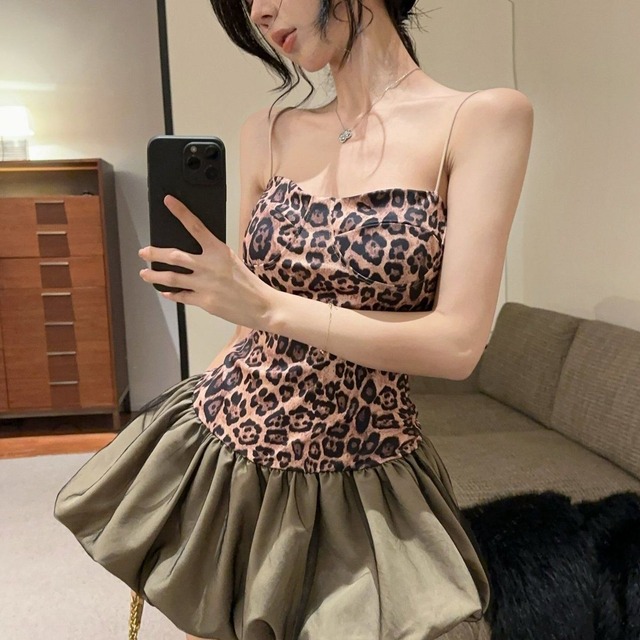 レオパード柄 キャミワンピース|ハイウエスト・バルーンシルエット(ショート丈)