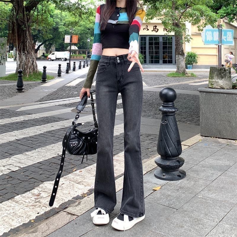 フレアデニム パンツ ハイウエスト ヴィンテージライク|美脚&脚長効果 Y2K ジーンズ