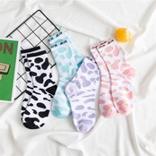 牛柄 ソックス 4色セット レディース メンズ ユニセックス 韓国ファッション JK風 ストリート カジュアル 中筒 靴下 くすみカラー