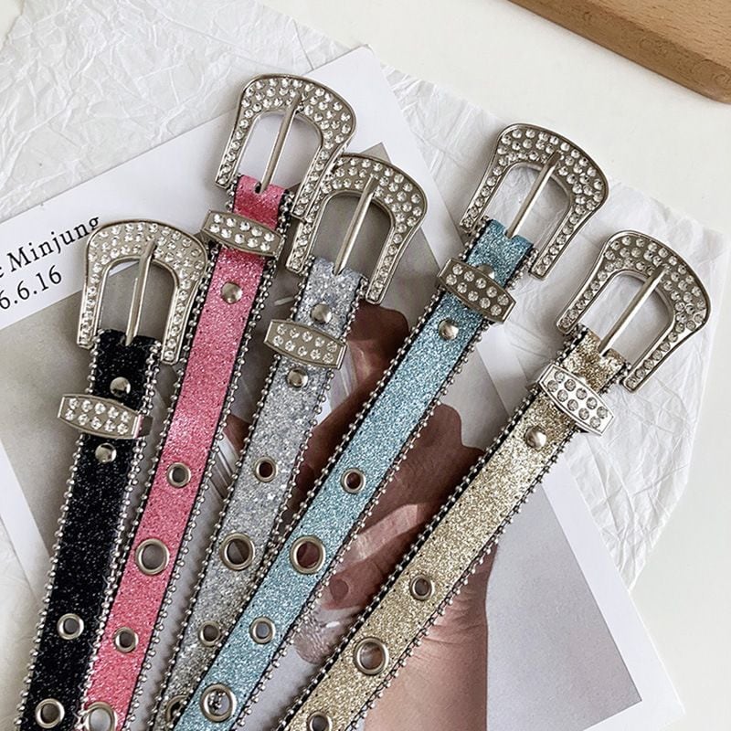 Y2K ラインストーン ベルト レディース 韓国ファッション 令和ギャル ストリート系 個性派 細身 105cm