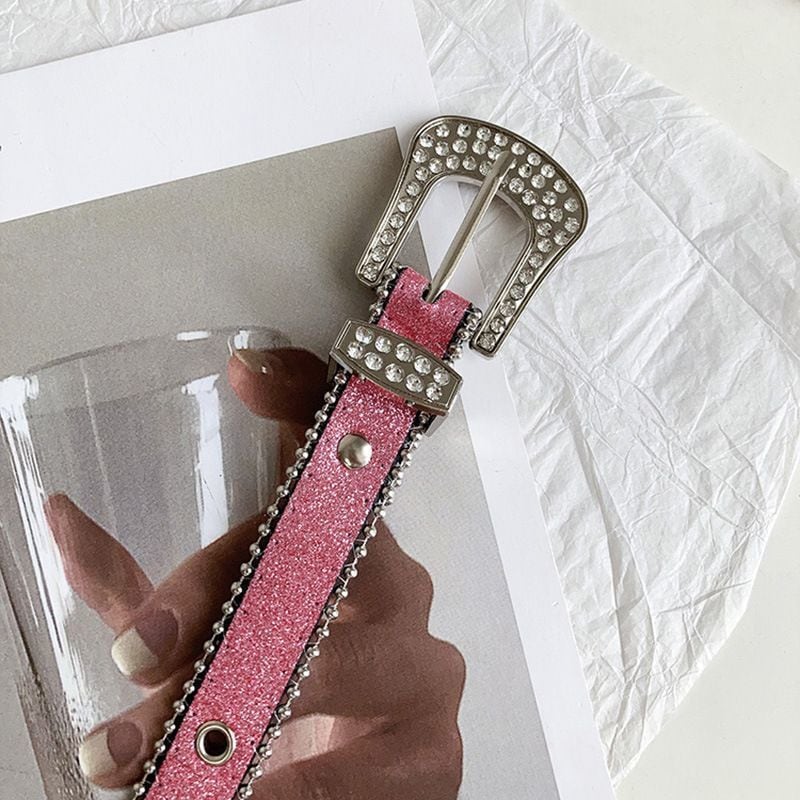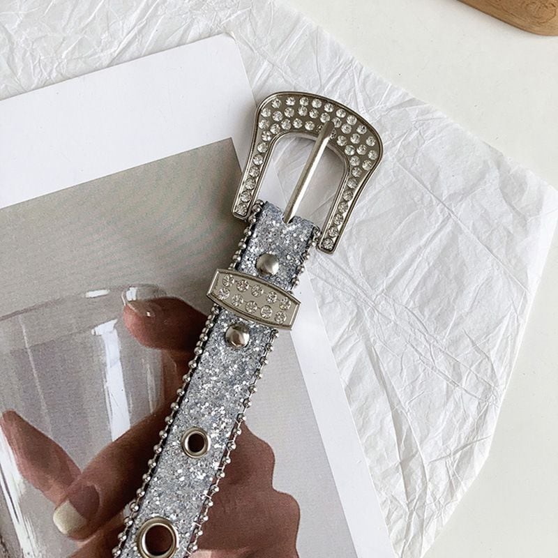 クーポン配布中!実質送料無料になる800円OFFクーポン!決済前にクーポンコード:XMAS800を入力してお得にGetしてね!キラキラ輝くラインストーンが目を引く、Y2K&令和ギャルにぴったりの細身ベルト。