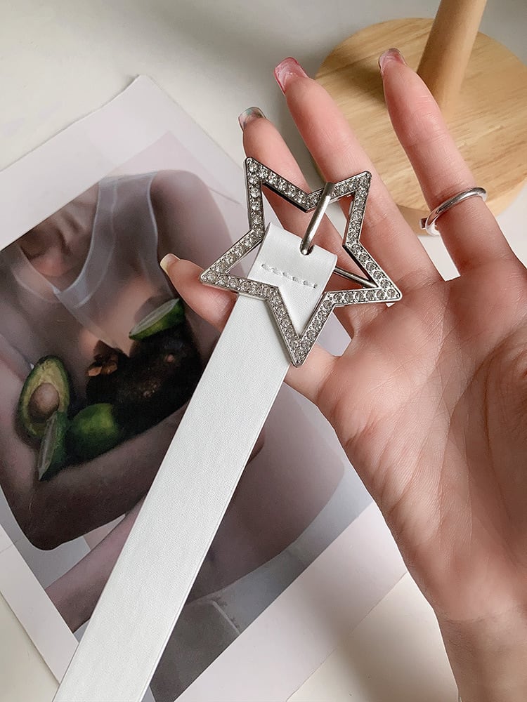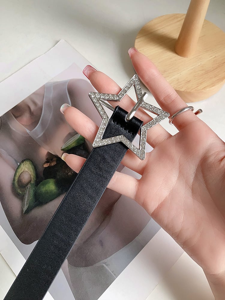 星柄バックルが映えるPUレザーのベルト。Y2Kムード満点で、デニム・ミニスカ・ワンピのウエストマークにぴったり