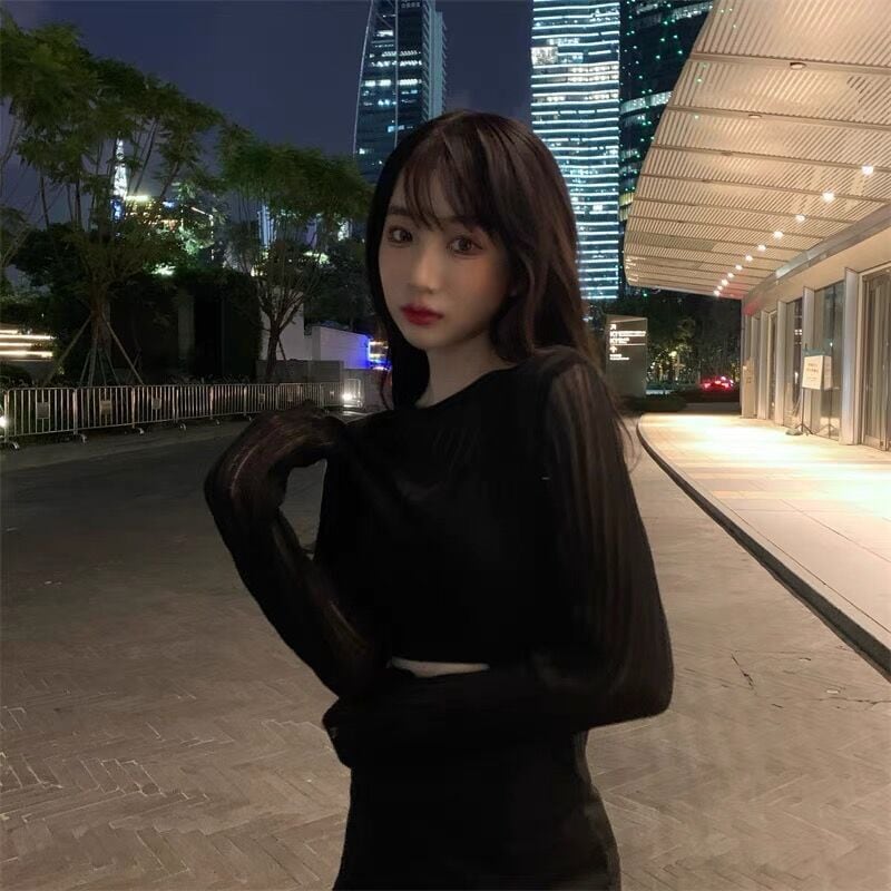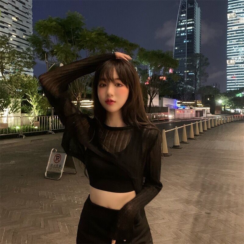 【デザイン】クロップド丈・透け感・長袖・丸首