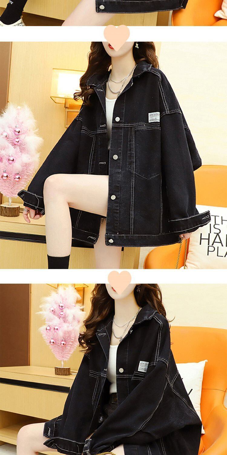 オーバーサイズ デニムジャケット レディース 春秋ライトアウター 長袖 ジージャン Gジャン ブラック