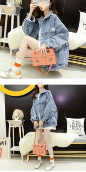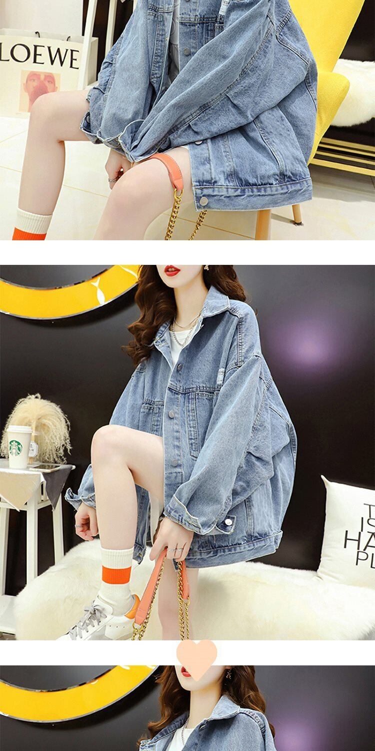 オーバーサイズ デニムジャケット レディース 春秋ライトアウター 長袖 ジージャン Gジャン ネイビー(刺?アリ)