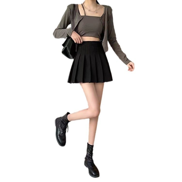 Y2K JK風 プリーツスカート ショート丈 韓国ストリート風 ボトムス インパン付き ダークグレー