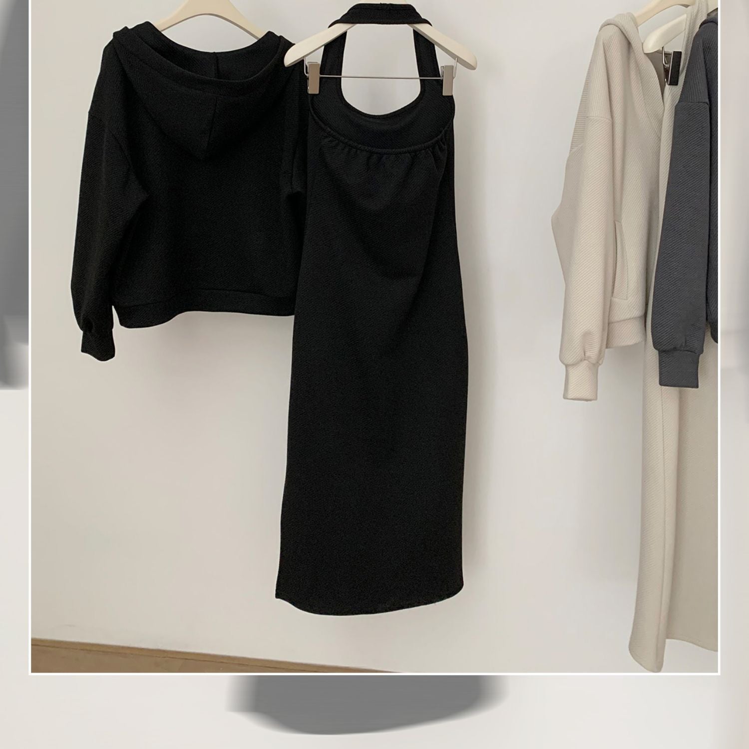 【秋冬新作】フーディーセットアップワンピース レディース カジュアル パーカー×スカート 2点セット ブラック