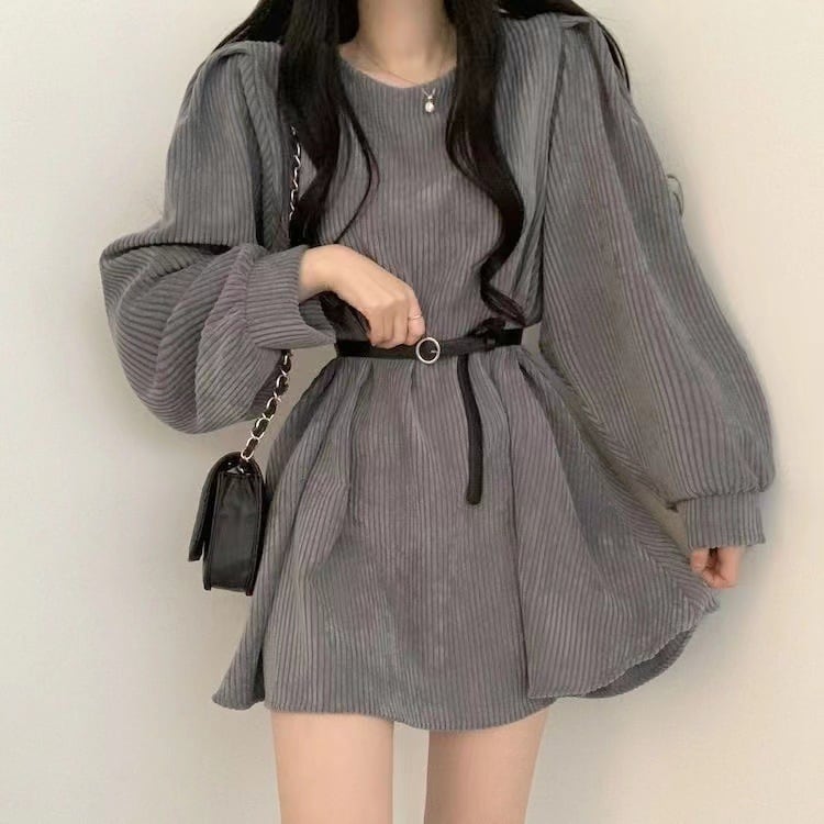 コーデュロイ素材でちょっぴりレトロ感もあって、清楚ガーリーにも量産型ギャルにもハマる万能ワンピ?