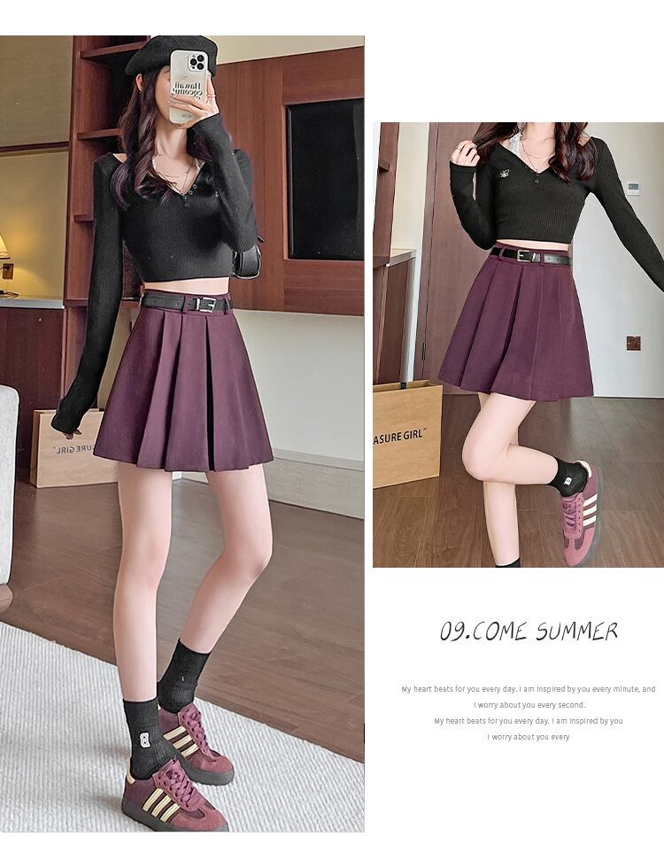 クーポン配布中!実質送料無料になる800円OFFクーポン!決済前にクーポンコード:XMAS800を入力してお得にGetしてね!ベルト付きプリーツスカートで、スタイル盛れ間違いなし。