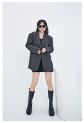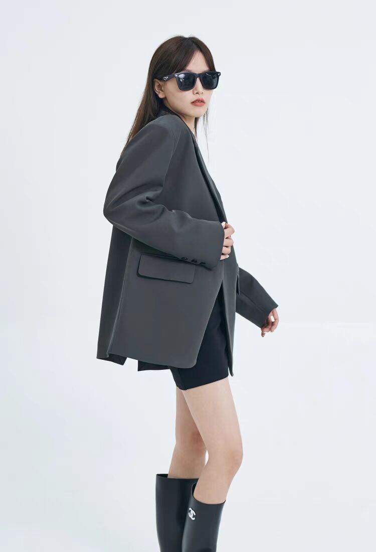 オーバーサイズ風ジャケット ゆるシルエットで垢抜け 放課後映えテーラードアウター グレー