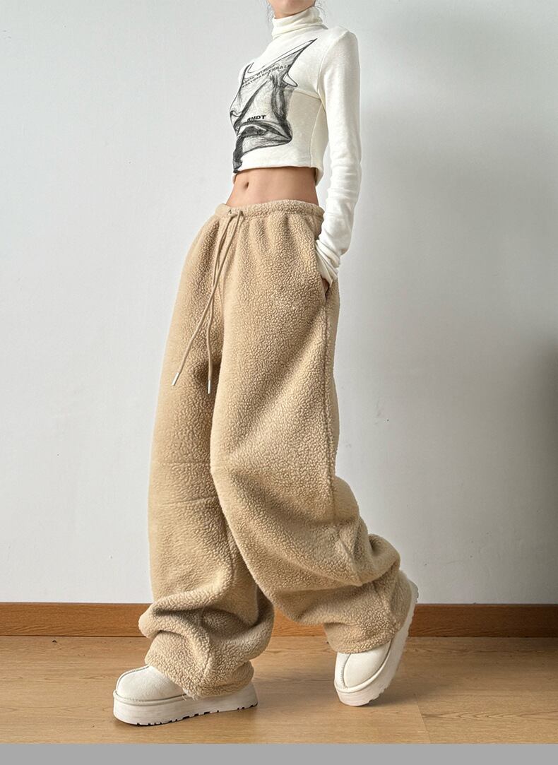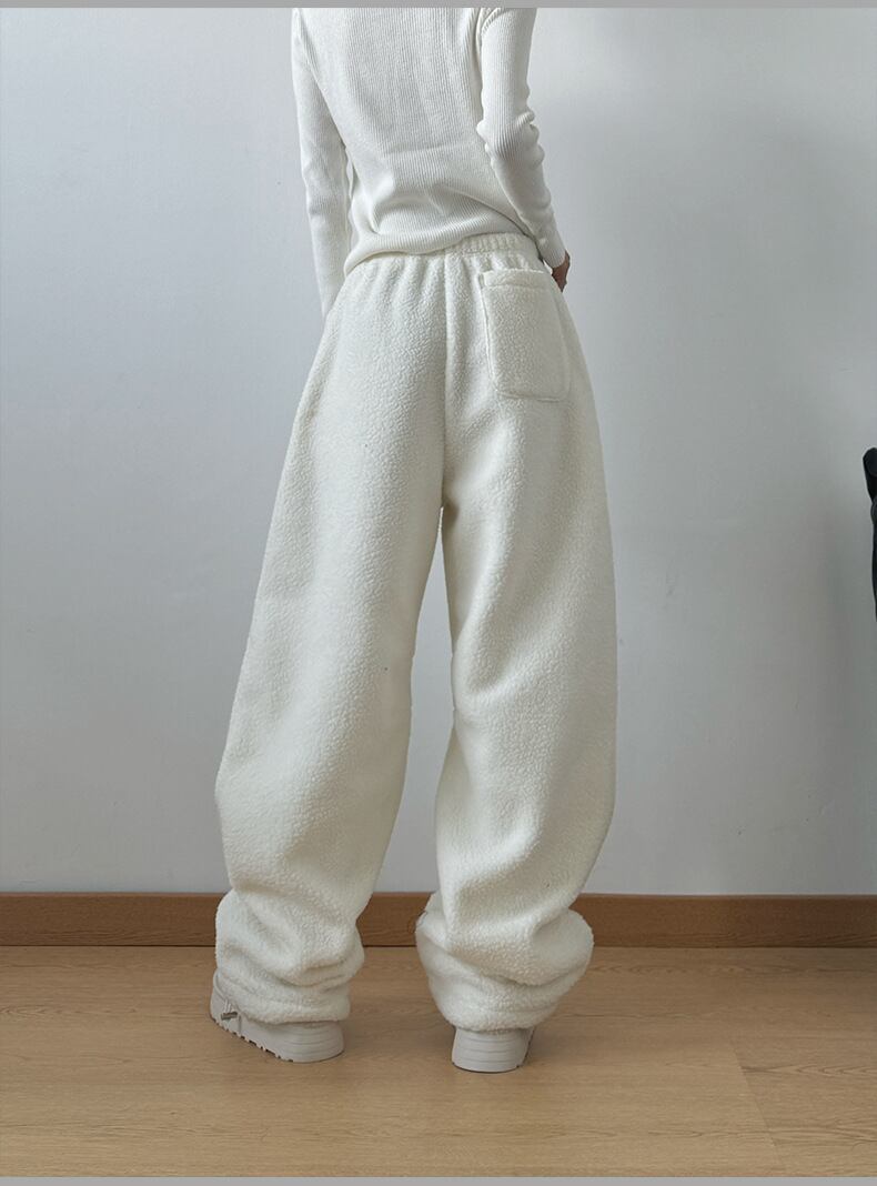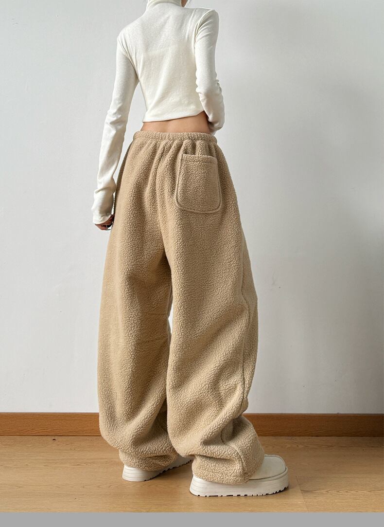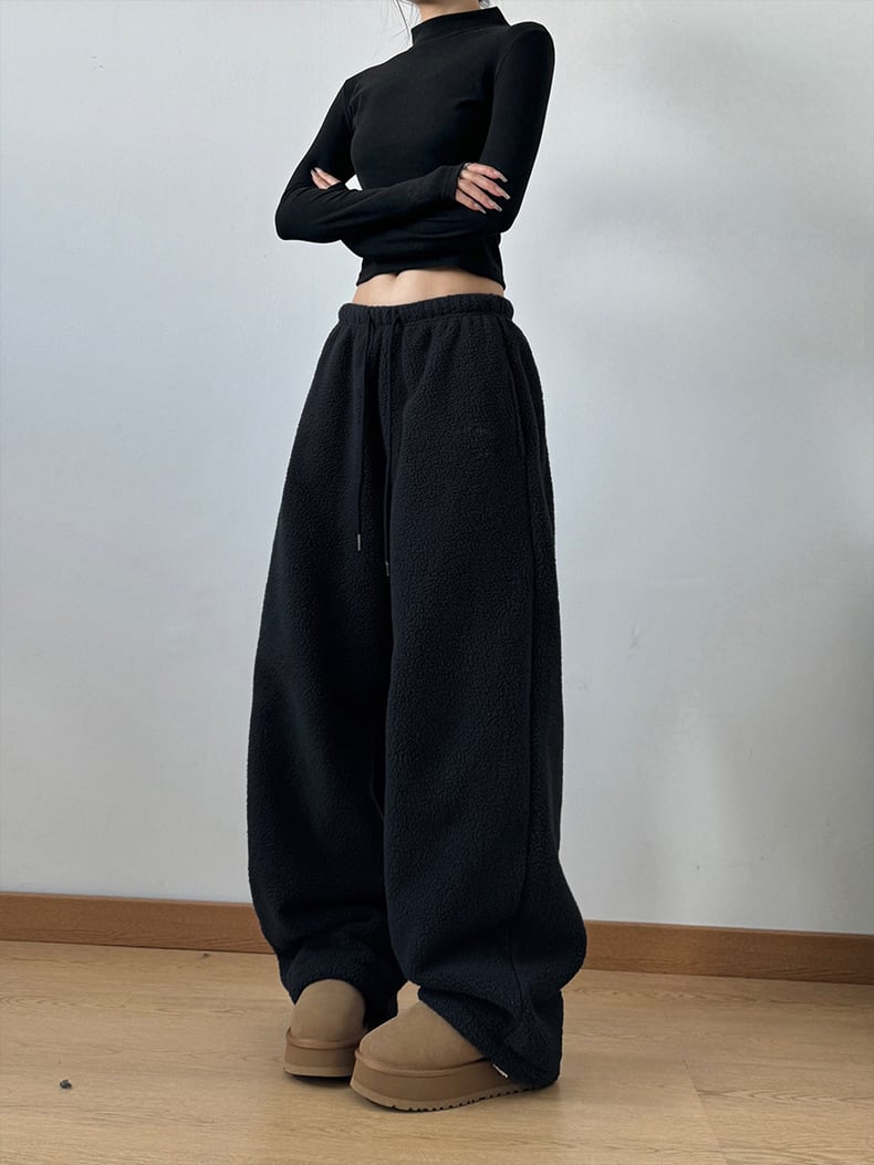 もこもこフリースワイドパンツ|冬の脚長見え?あったかゆるダボストレート ブラック