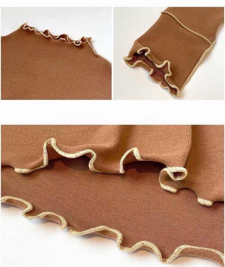 両面フリース調 あったかフリルハイネックトップス 長袖 レディース 秋冬 キャメル
