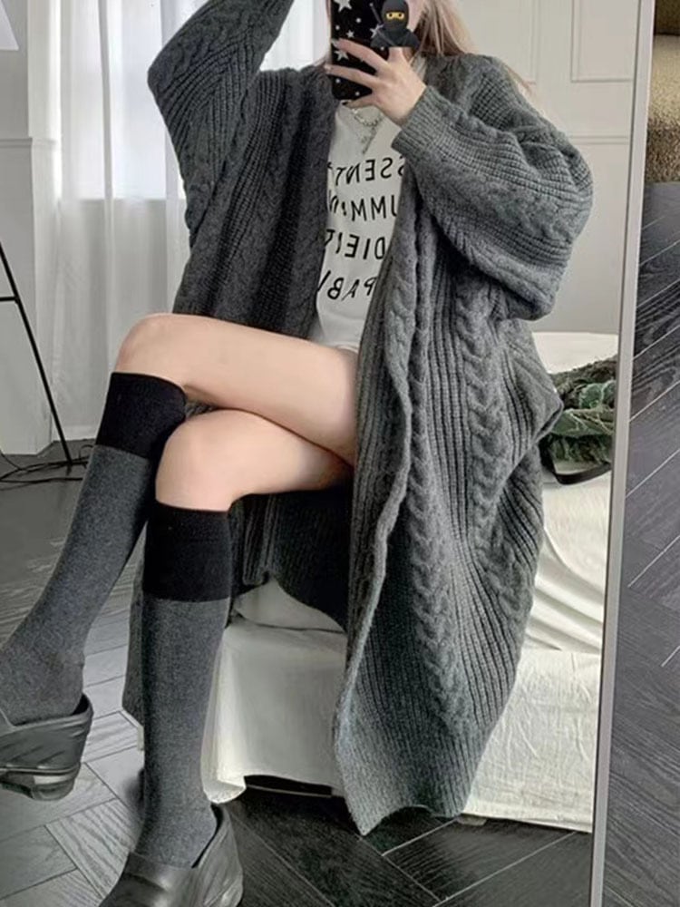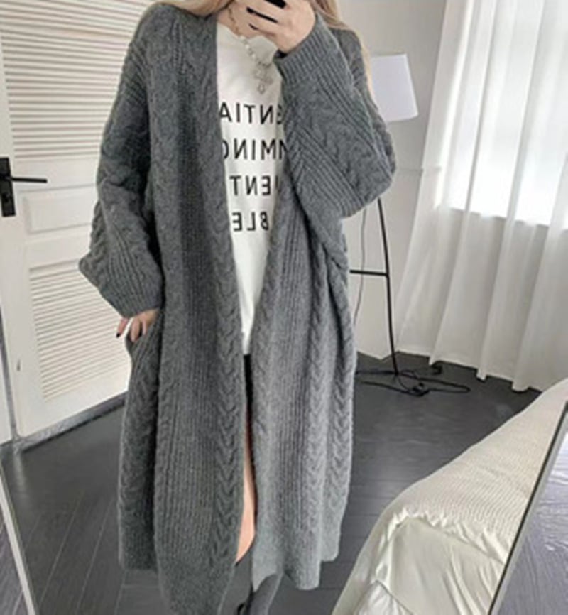 ゆったりしたシルエットが可愛い、厚手ロングニットカーディガンです。