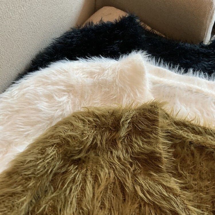 2025秋新作 シャギーニットカーディガン ショート丈で脚長見え 羽織りトップス Vネック ふわもこ 大人可愛い ブルー