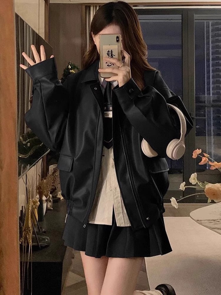 ライダース風PUジャケット レディース 2025秋新作 ショート丈 レトロアメカジ ブラック