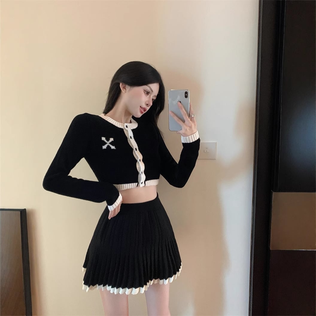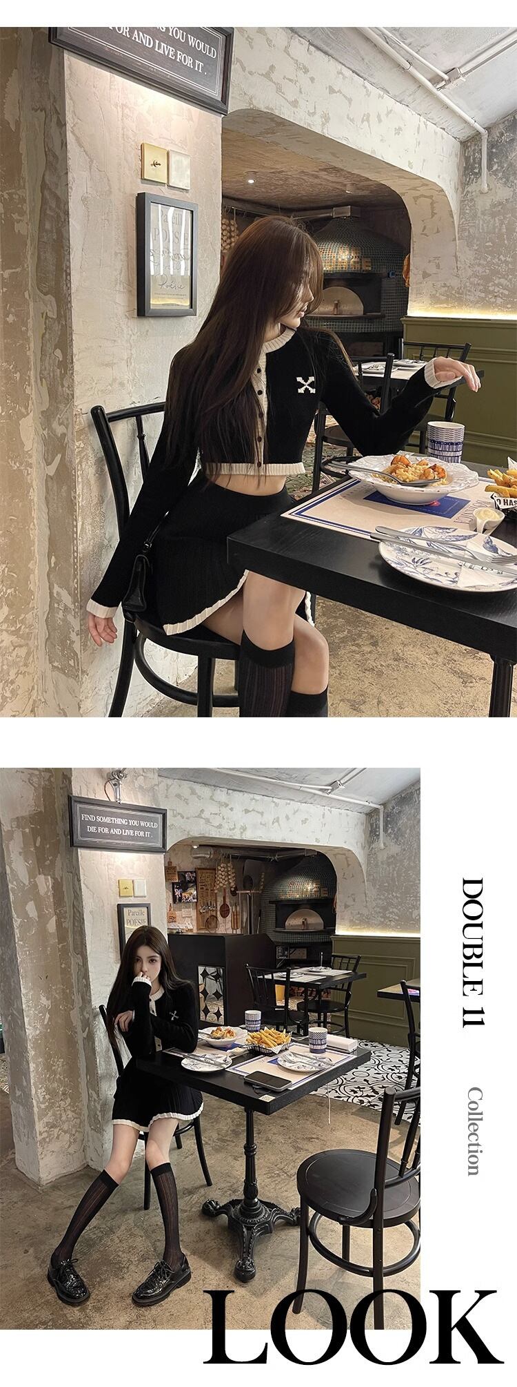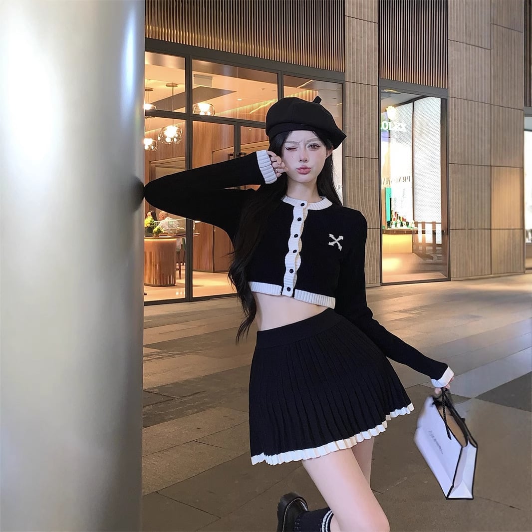 お嬢様風ニットセットアップ|カーディガン&ミニスカート 2点セット 秋冬 韓国風コーデ 上品ガーリー クラシカルフェミニン きれいめガーリー