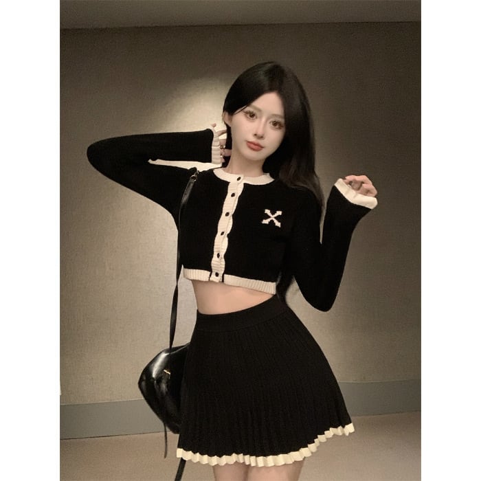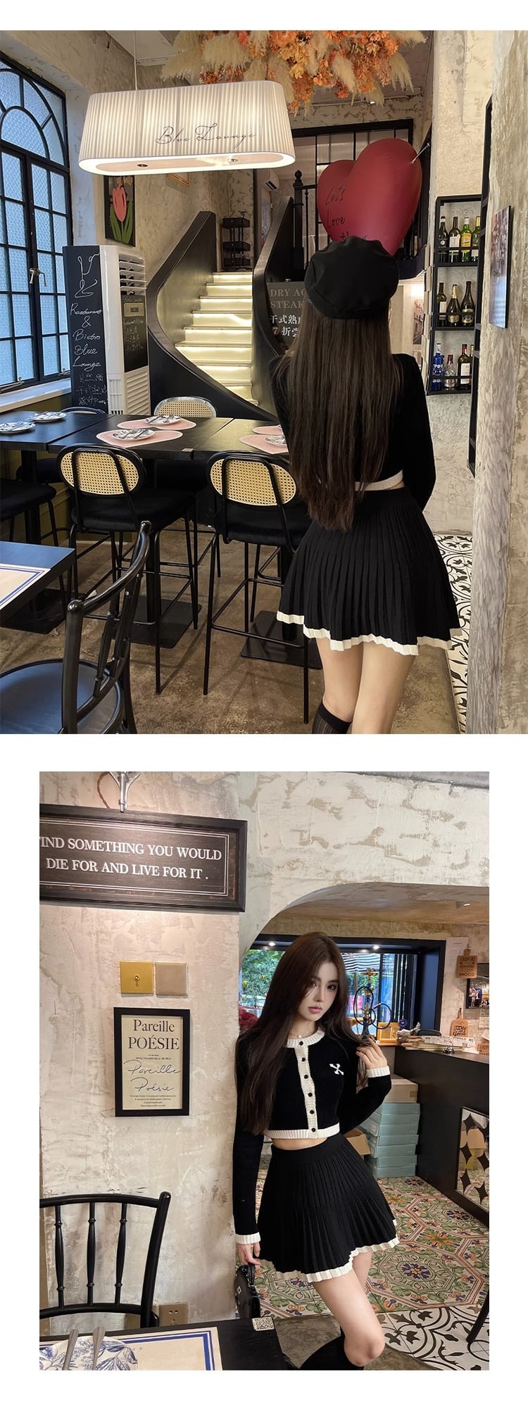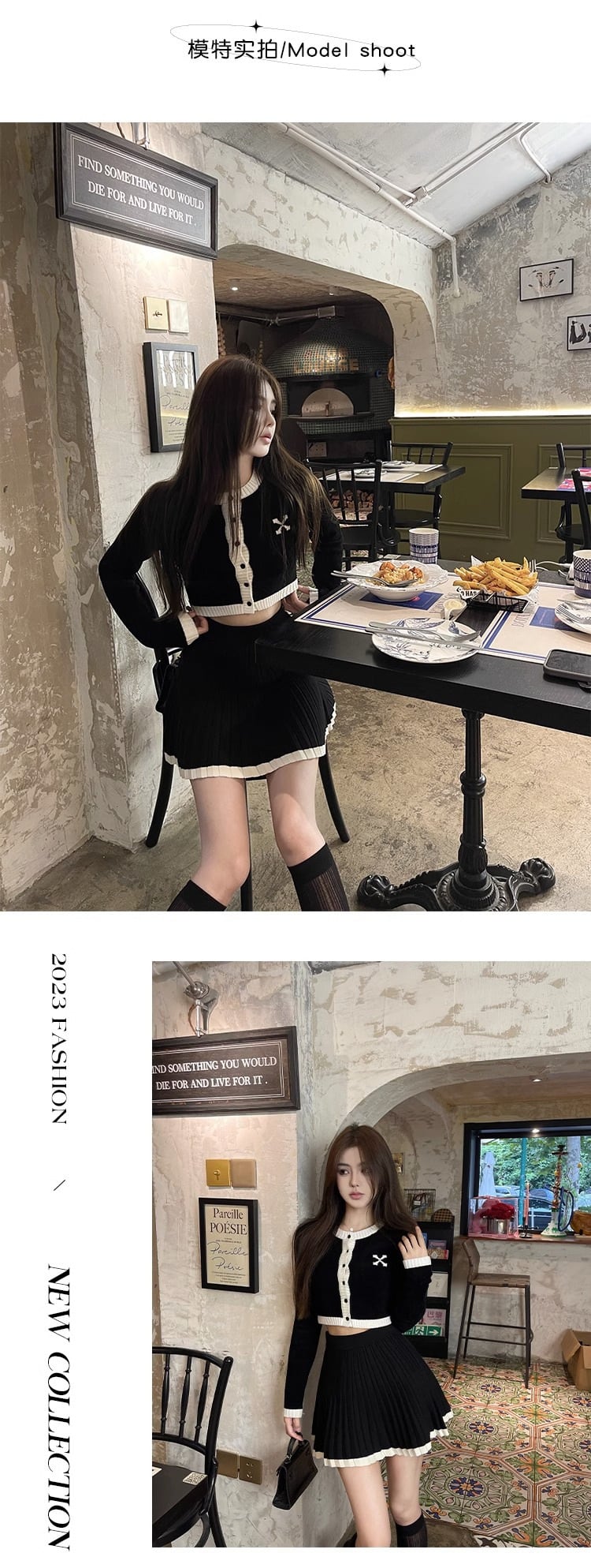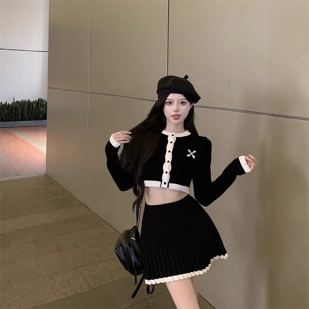 お嬢様風ニットセットアップ|カーディガン&ミニスカート 2点セット 秋冬 韓国風コーデ 上品ガーリー クラシカルフェミニン きれいめガーリー