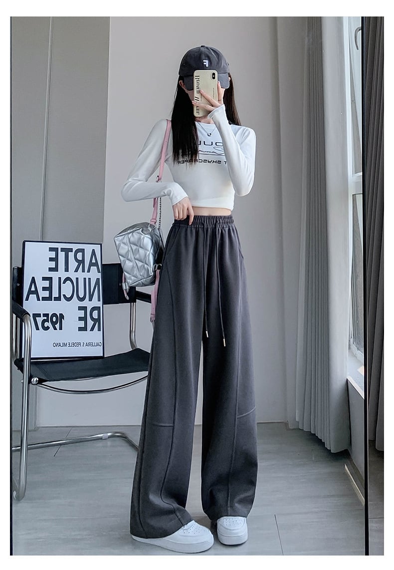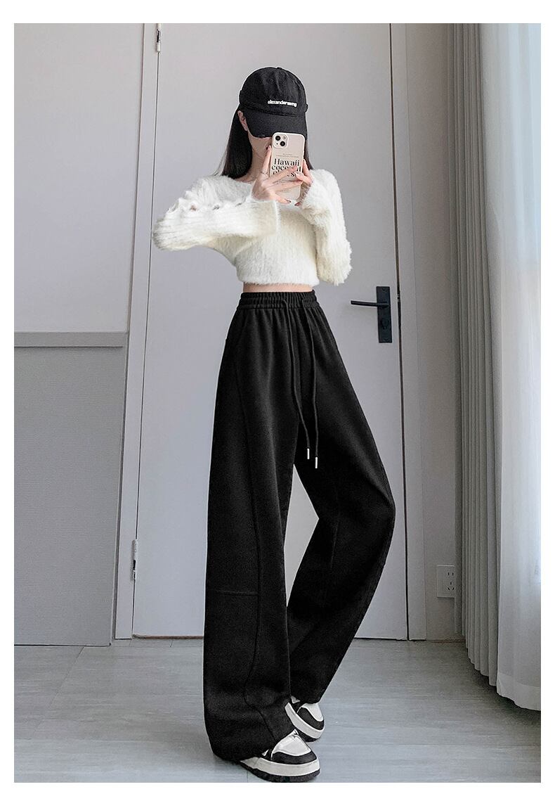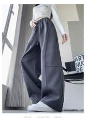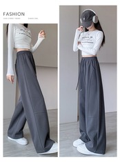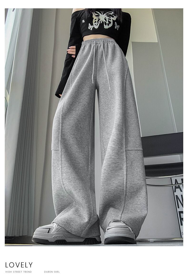ワイドレッグパンツ レディース ハイウエスト ストレート 秋 ゆったり スウェットパンツ ロング丈 カジュアル ボトムス ライトグレー