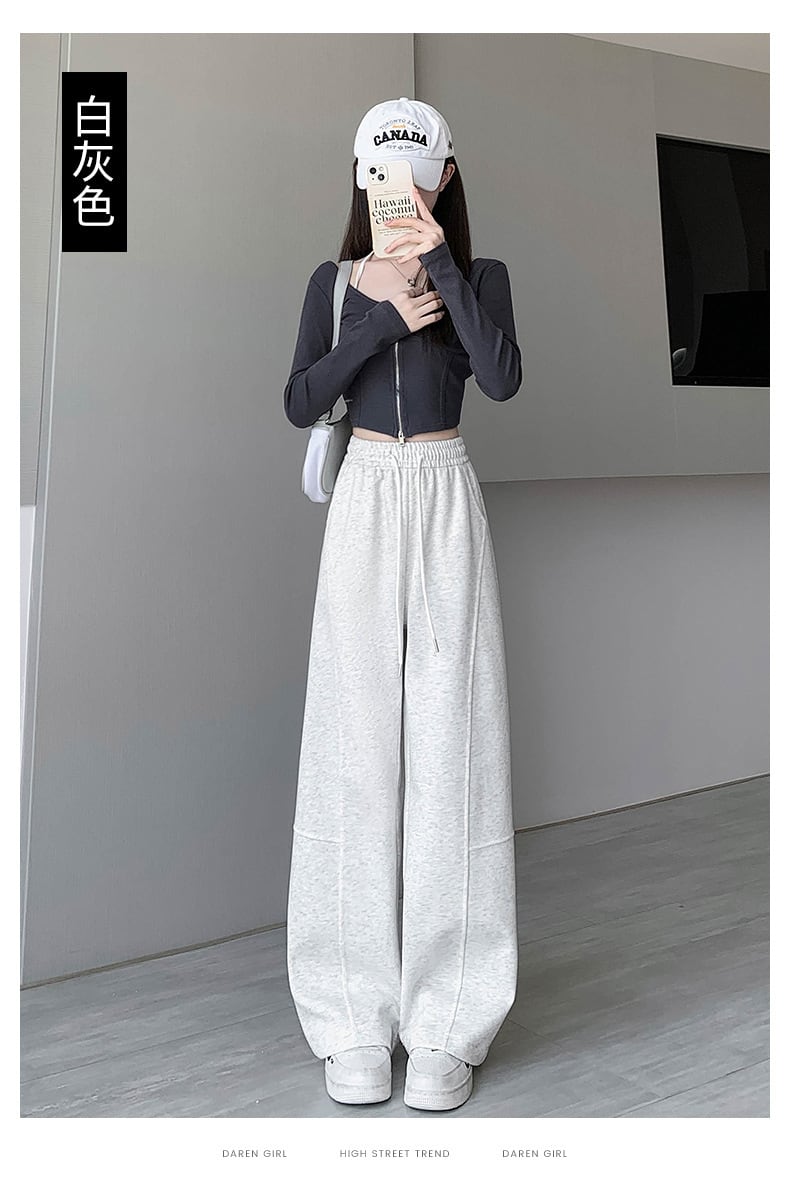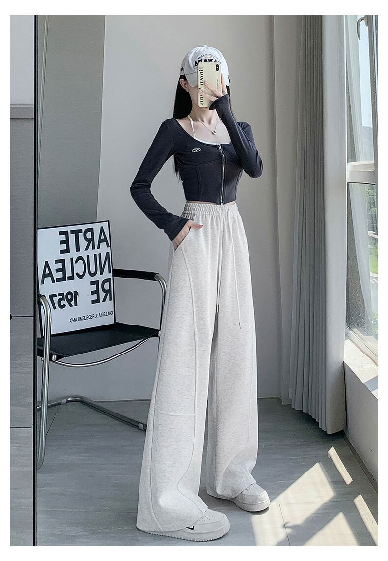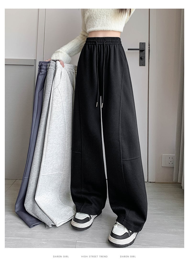 ワイドレッグパンツ レディース ハイウエスト ストレート 秋 ゆったり スウェットパンツ ロング丈 カジュアル ボトムス ブラック