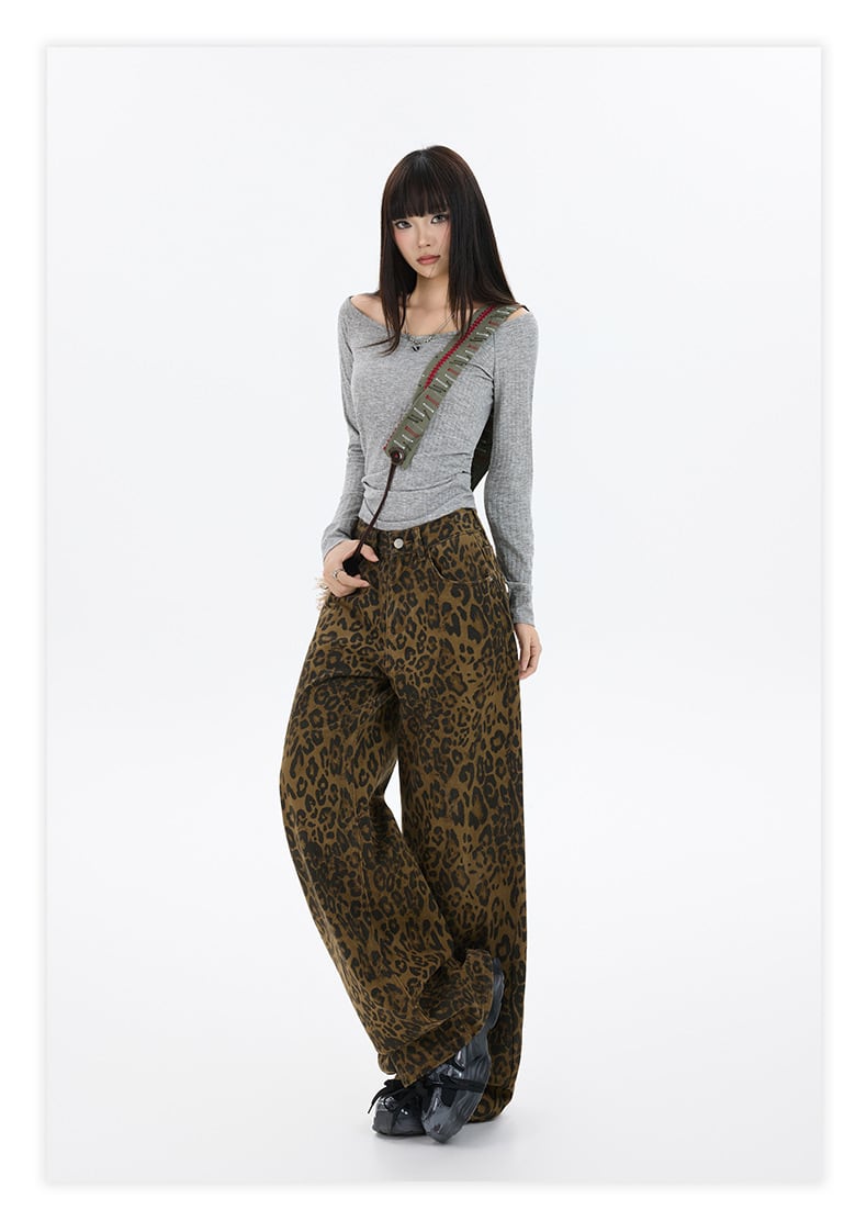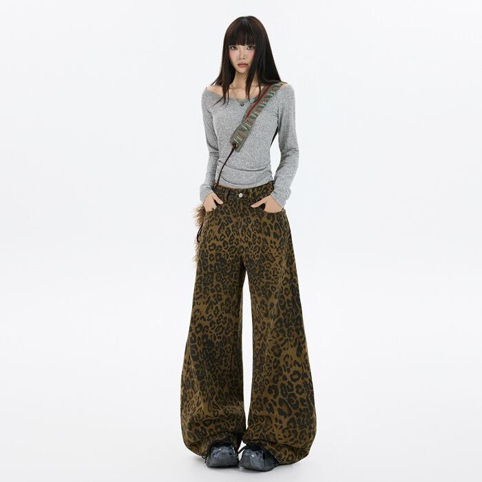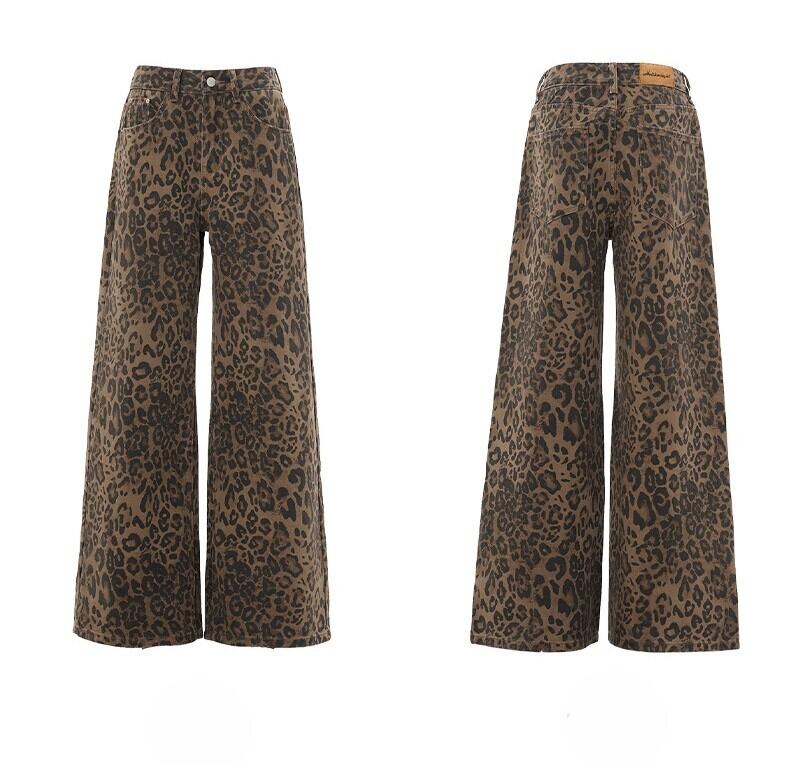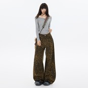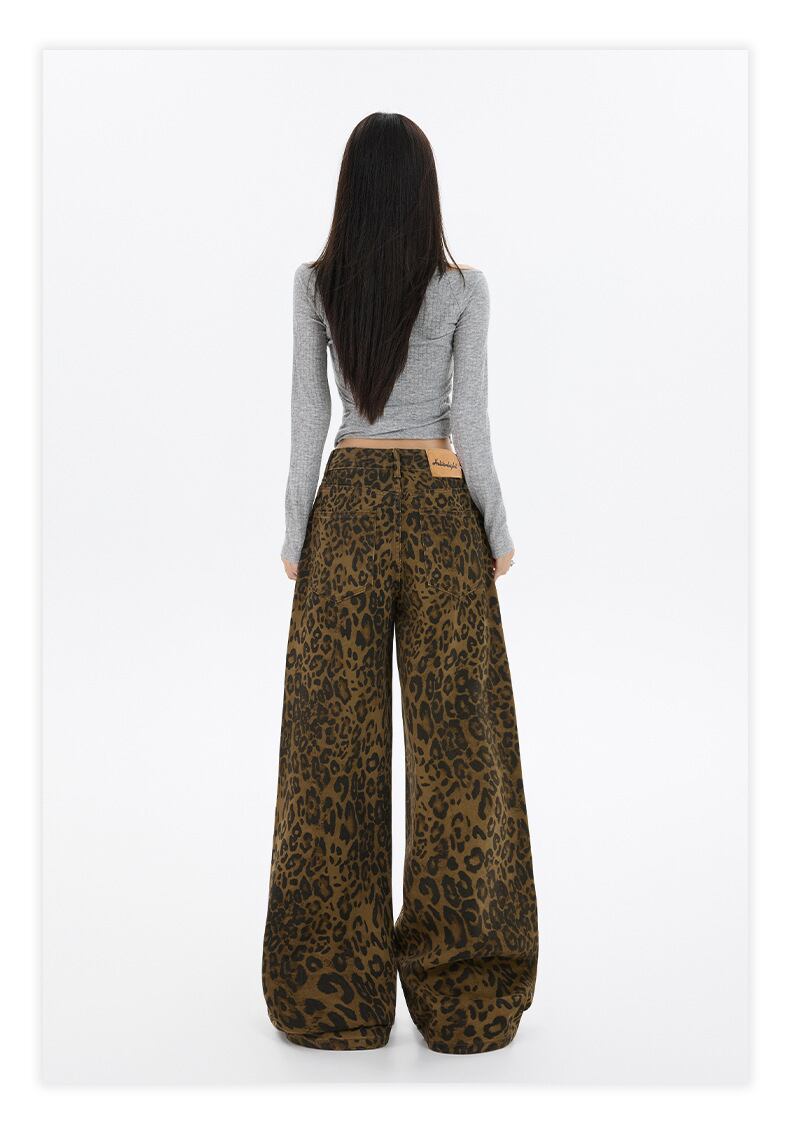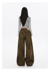 【2025秋新作】レオパードワイドパンツ レディース 高腰 ストリート系 ヴィンテージ ゆるダボ美脚