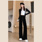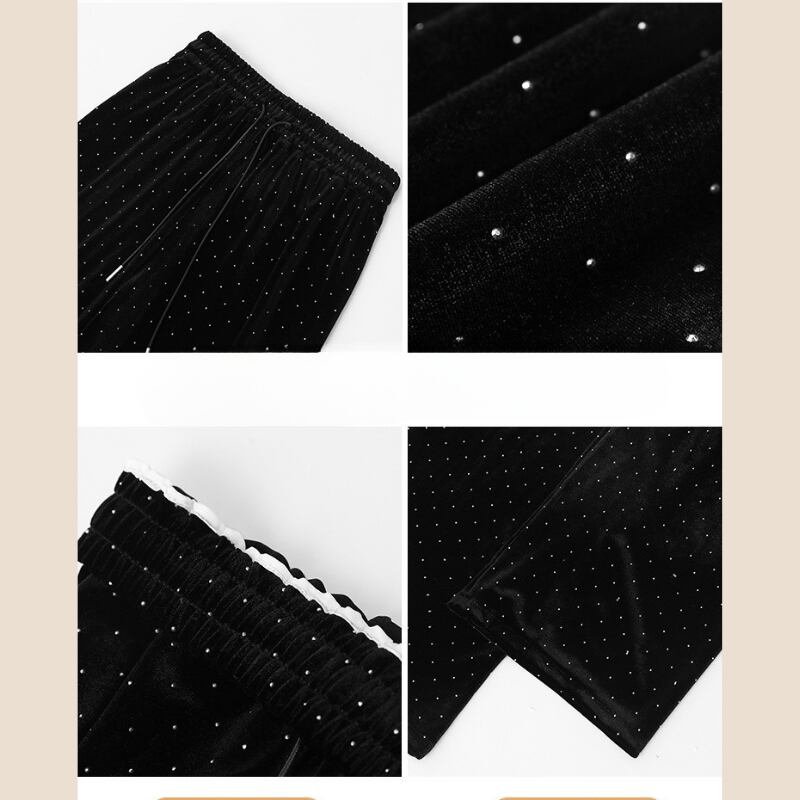 【新作】きらめきストーン×ベロア風ワイドパンツ レディース 秋 高見えルーズシルエット