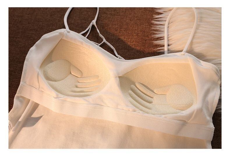 【盛れる美背】蜘蛛の巣キャミソール 胸パッド付き ブラトップ一体型 タンクトップ レディース