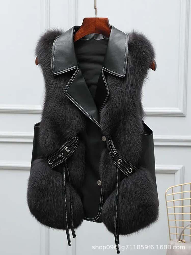 【2025冬新作】フェイクファーベスト レディース ショート丈 おしゃれ ベスト アウター 暖かい 秋冬 アウター 重ね着 ブラック