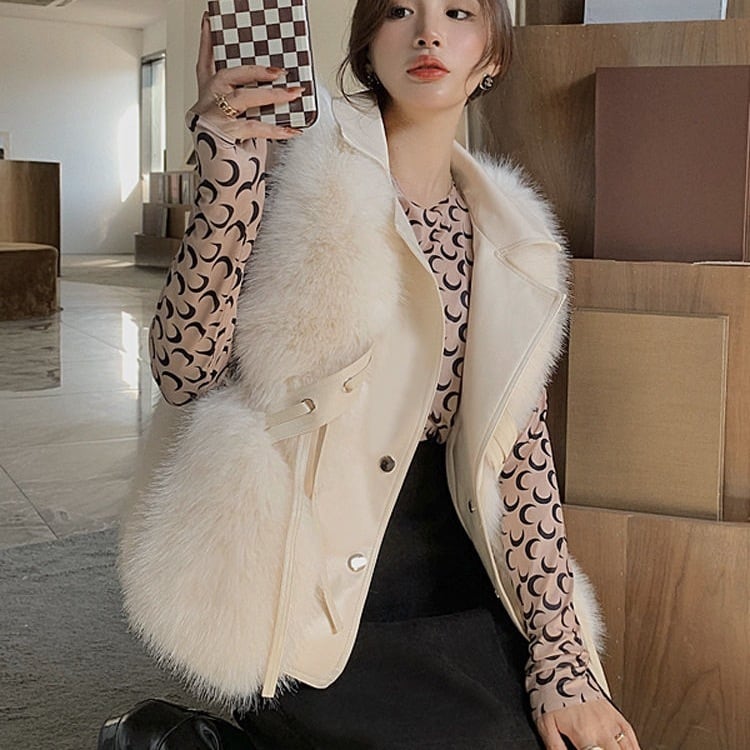 ふんわりとしたフェイクファーが季節感たっぷり。ショート丈で軽やかに羽織れるベストは、秋から冬までロングシーズン活躍します。