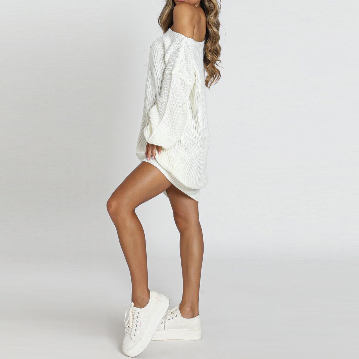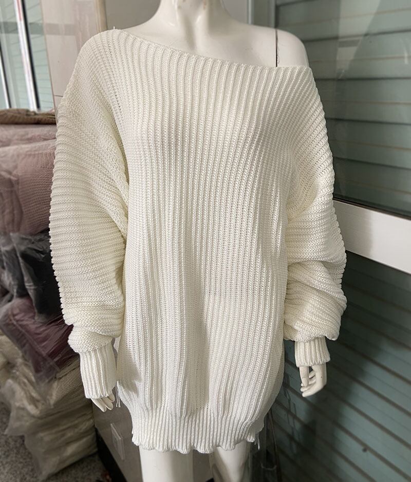 秋冬新作 ニットワンピース レディース オフショルダー 長袖 ランタンスリーブ 中長丈 ミニワンピ セクシー 可愛い 体型カバー ホワイト