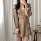 クーポン配布中!実質送料無料になる800円OFFクーポン!決済前にクーポンコード:XMAS800を入力してお得にGetしてね!秋冬コーデにぴったりの韓国風ニットワンピースが登場?