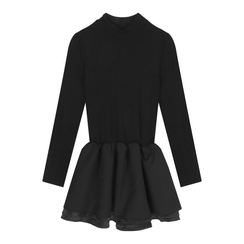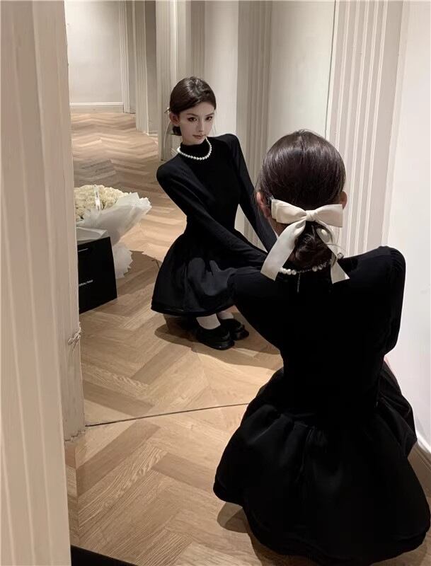 黒ニットワンピ|プチハイネック×フレアシルエット|秋冬スタイル盛れワンピ