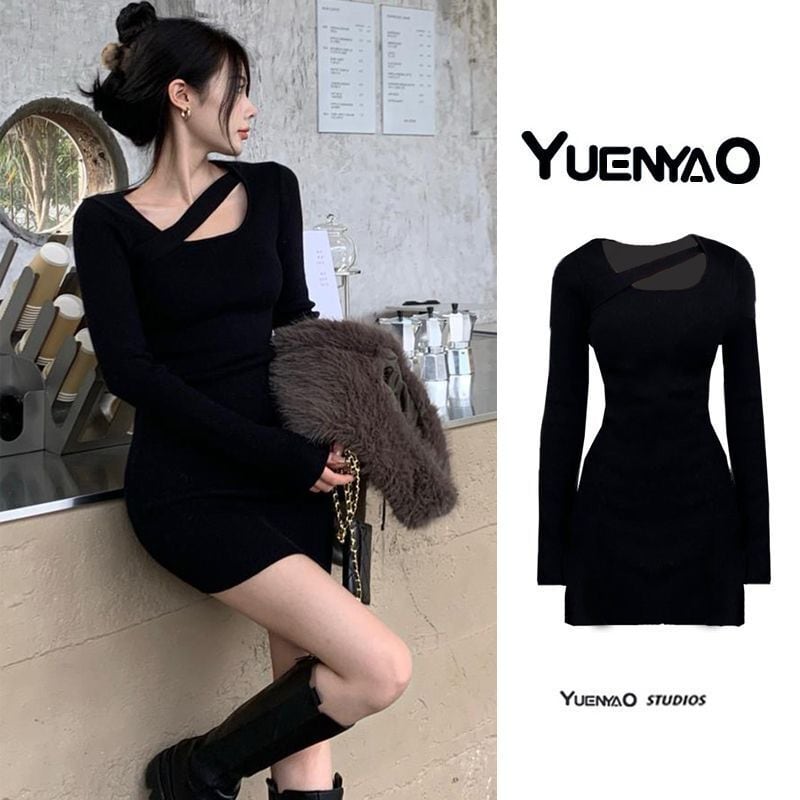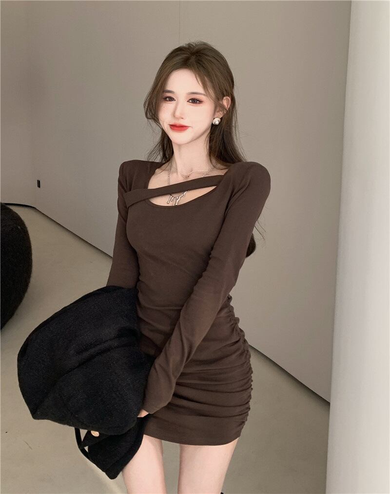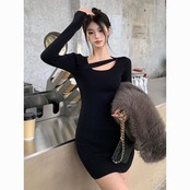 2025新作 タイトミニワンピ|長袖×ミニ丈でスタイル盛れ? 黒/ブラウン|秋冬ガールズコーデ ブラック