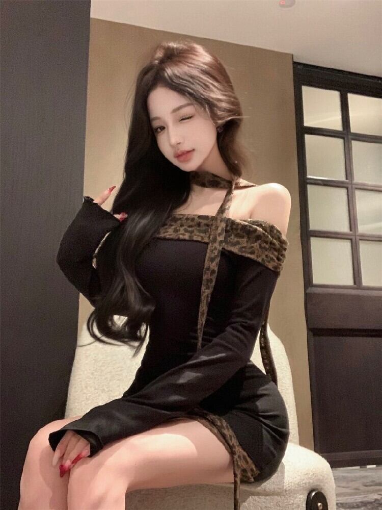 クーポン配布中!実質送料無料になる800円OFFクーポン!決済前にクーポンコード:XMAS800を入力してお得にGetしてね!秋の新作、セクシーな純欲系スタイルのレオパード柄ミニワンピース。