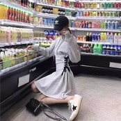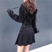 秋新作 フーディワンピ|ウエストリボン付き ストリートガーリー|グレー S-2XL