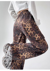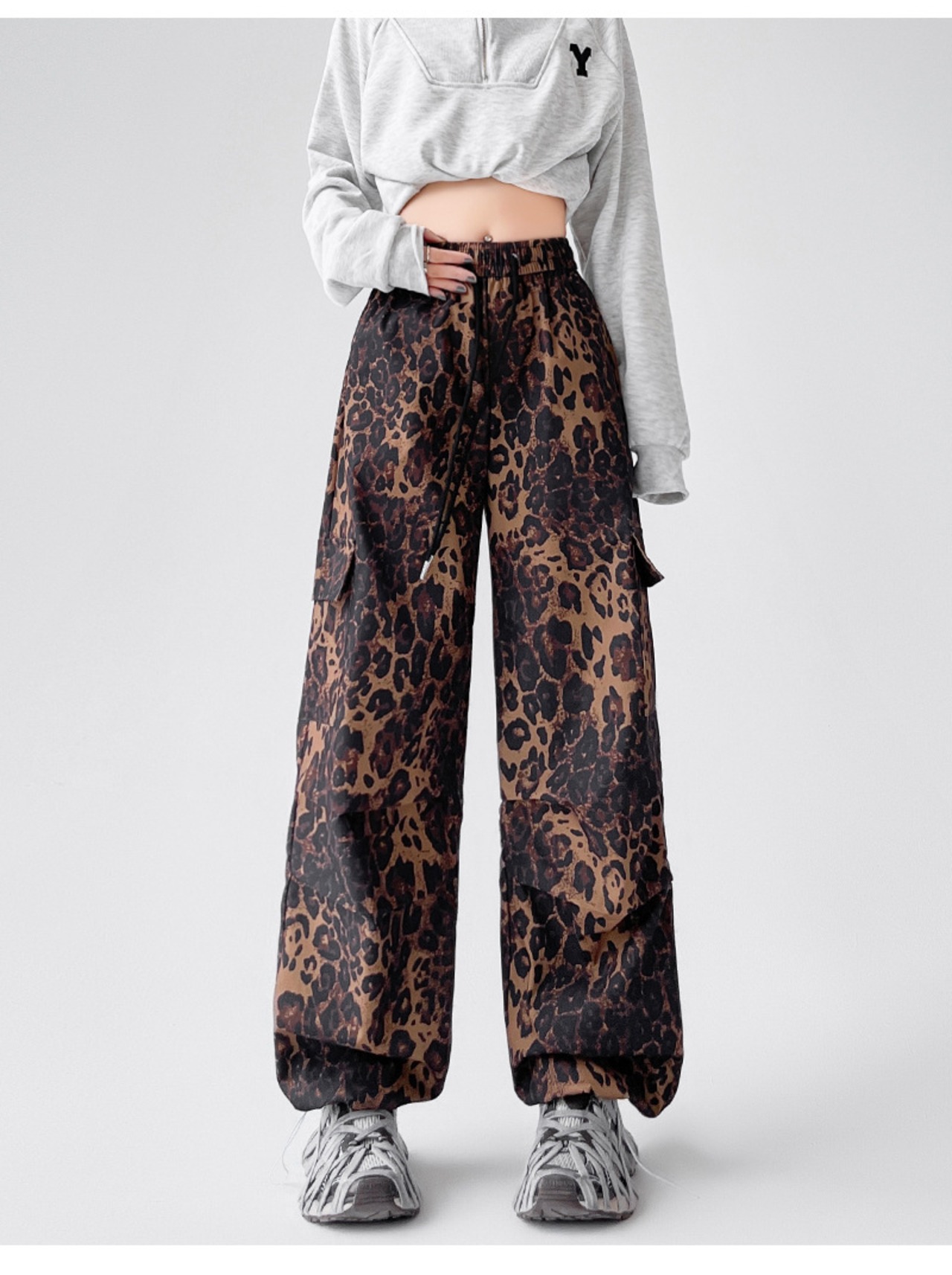 デザイン:レオパード柄・ストリート風・ワイドシルエット・ハイウエスト・ロング丈