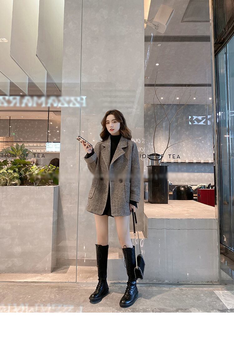 千鳥格チェック ロング丈 テーラードジャケット レディース 秋冬新作 ゆったりシルエット 小顔見え アウター