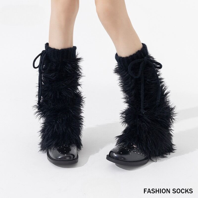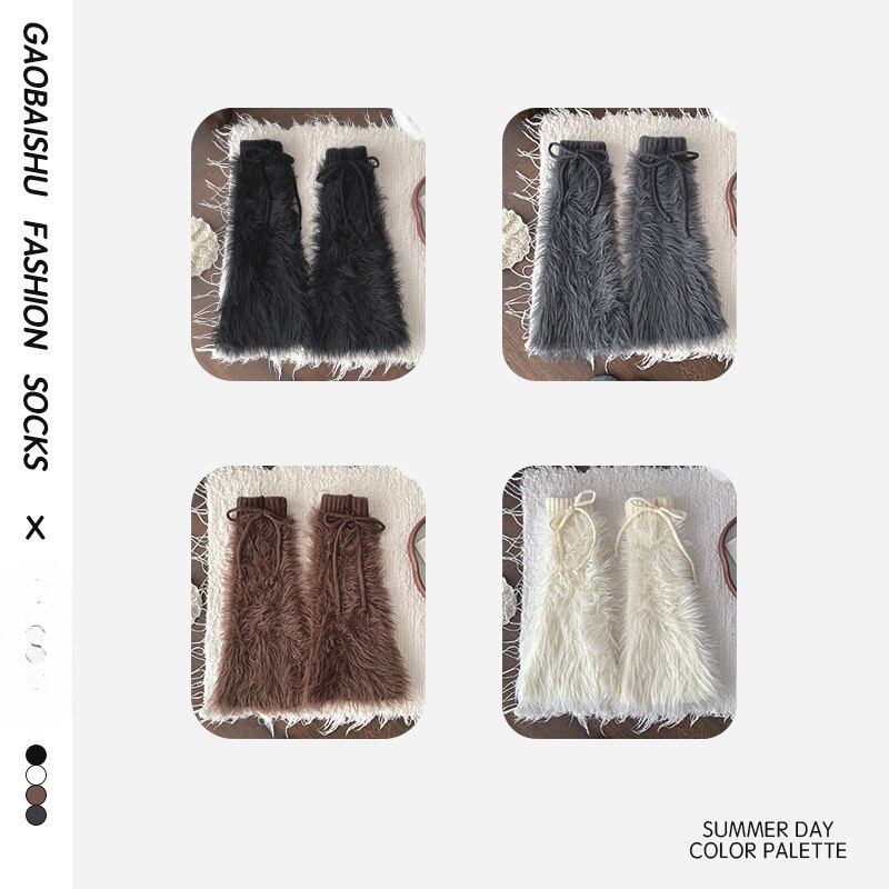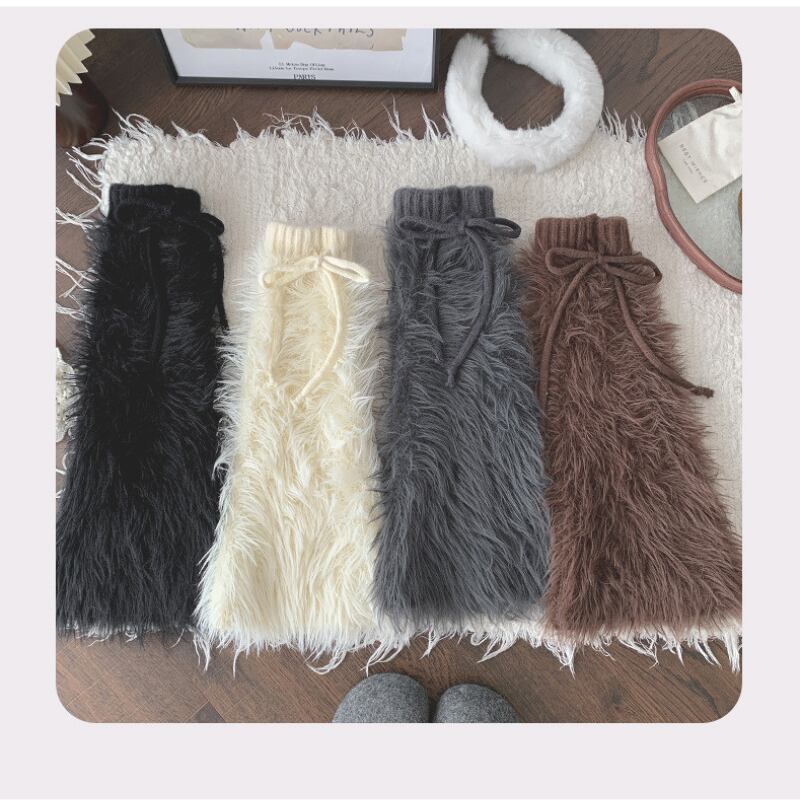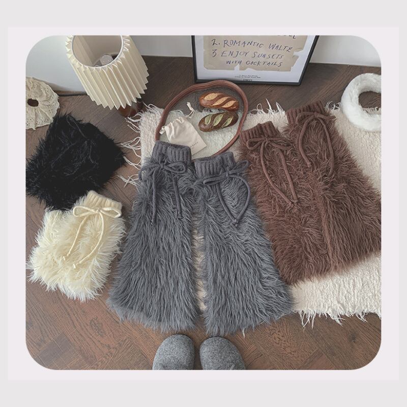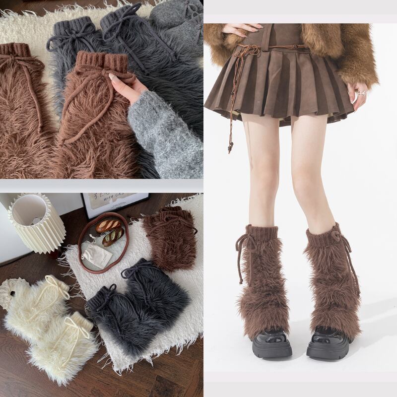 レッグウォーマー レディース 秋冬 もこもこ 保温 厚手 Y2K風 ソックスカバー ニット 毛足あり 暖かい
