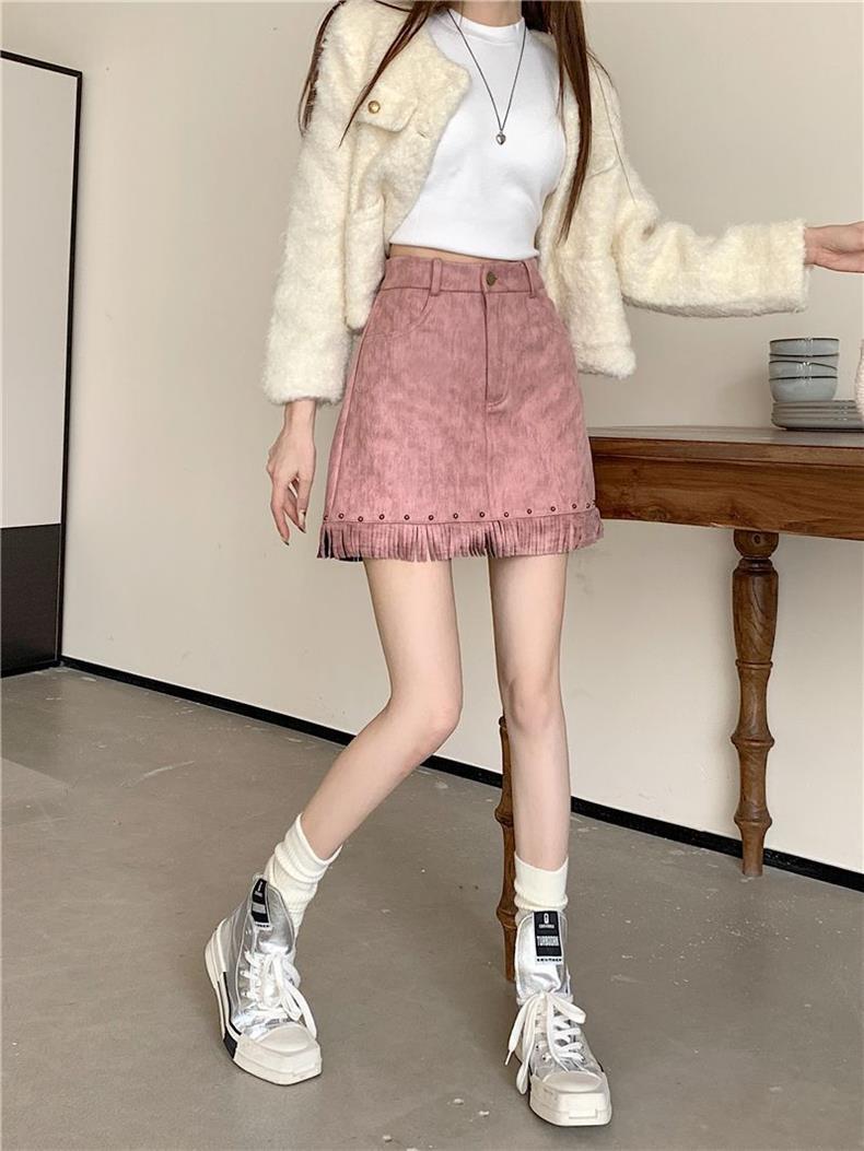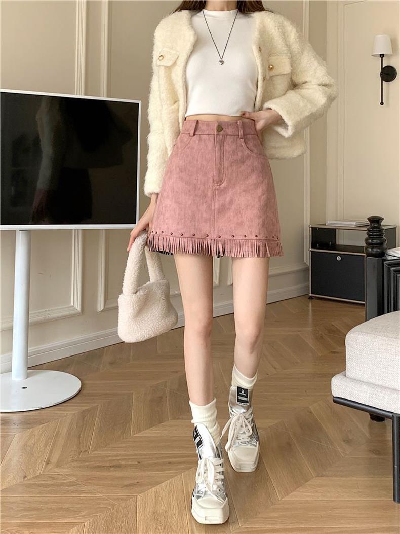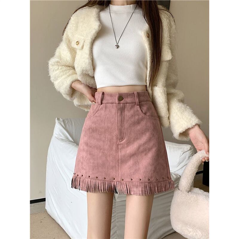 2025新作 スエード調 フリンジタイトスカート|大きいサイズ対応 S-3XL ピンクミニスカート