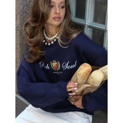 秋冬 新作 ストリート系 裏起毛 スウェット レディース ゆるだぼ ロゴプリント トレーナー 韓国風 カジュアル M-3XL ブラック