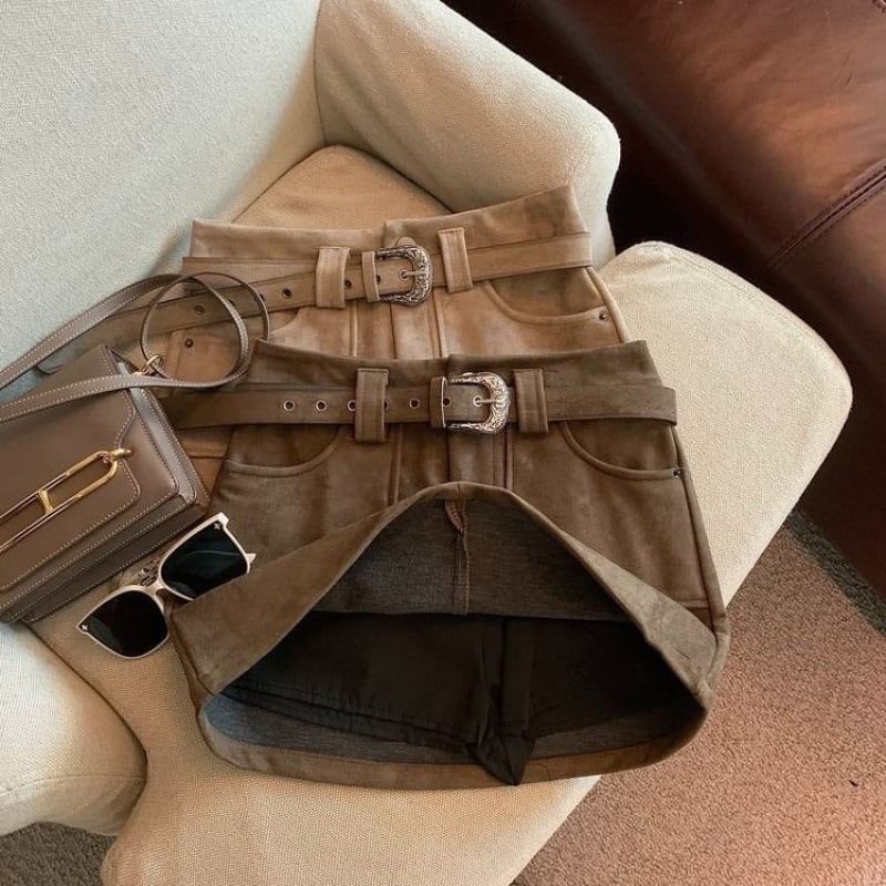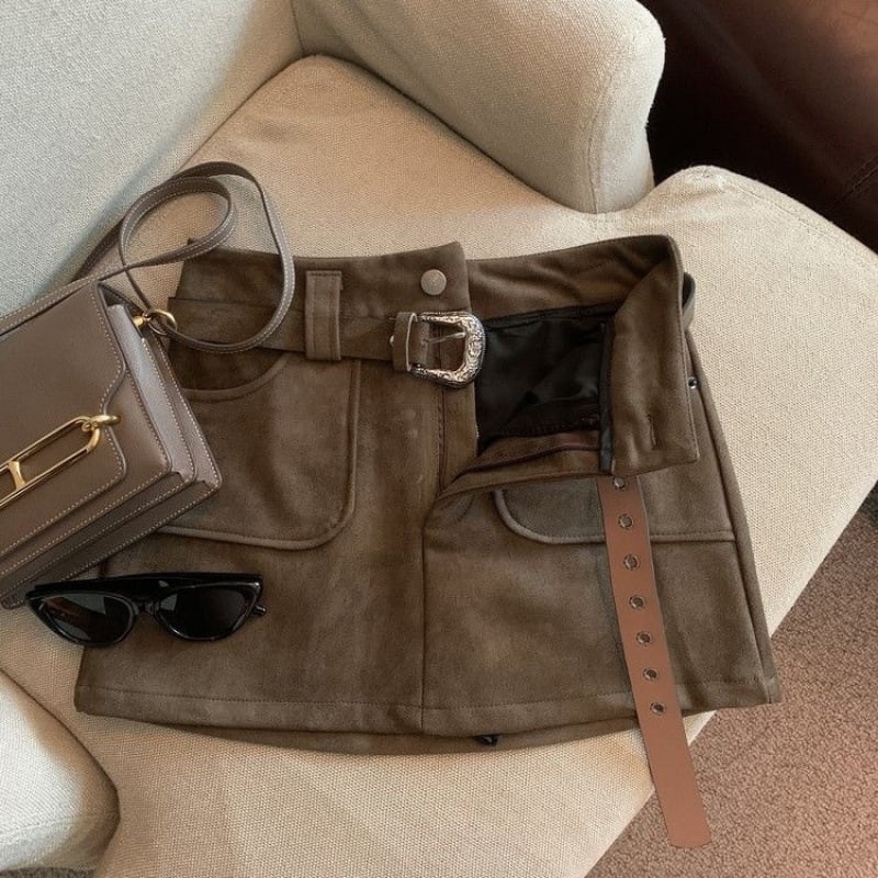 秋冬新作 スエード調ミニスカート 安全パンツ付き レディース タイトスカート ギャル ストリート風 ブラウン S-3XL