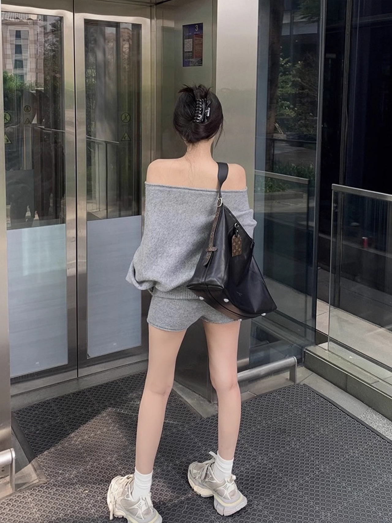 秋冬新作 オフショルダー ニットアップ 2点セット 大人ガーリー 韓国風 コーデ