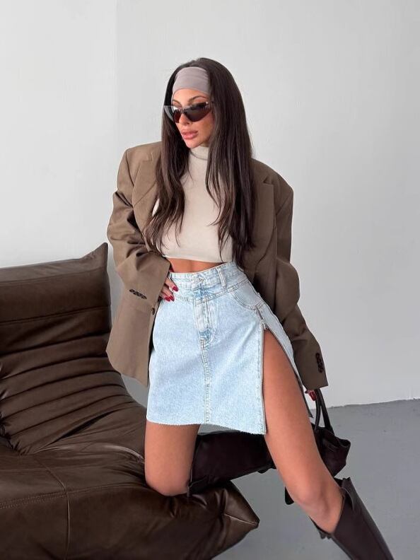 デニムミニスカート レディース|不規則デザイン 高ウエスト ジップ付き ストリート風 ブルー
