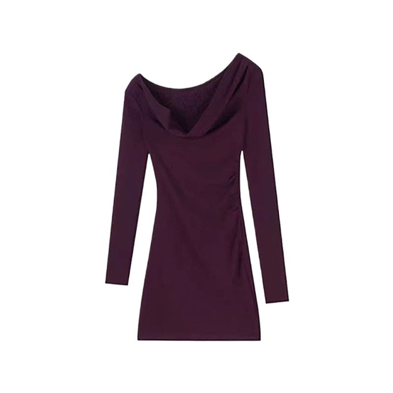 紫 レース切り替え ミニワンピース 長袖 タイト 高見え 秋新作