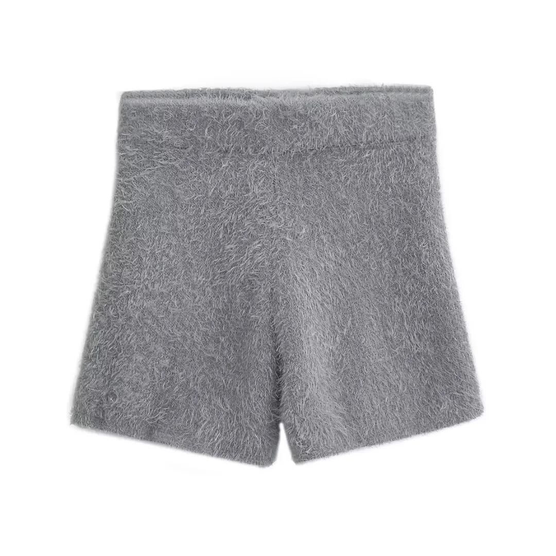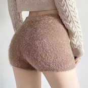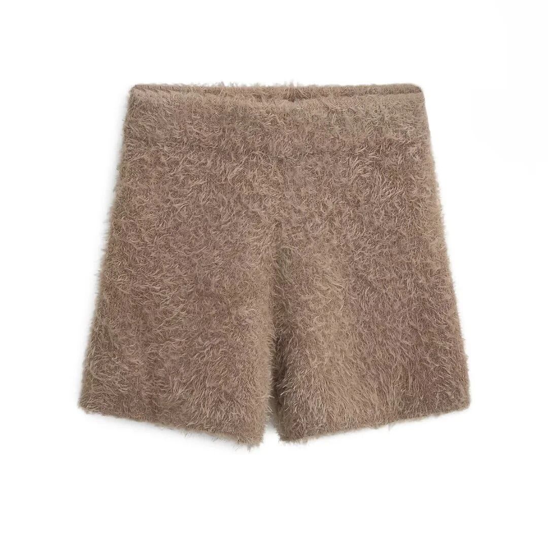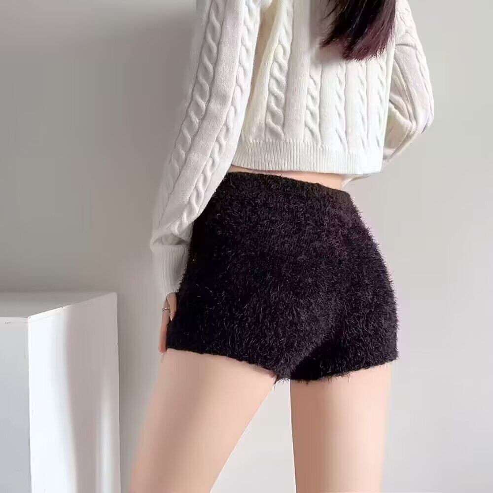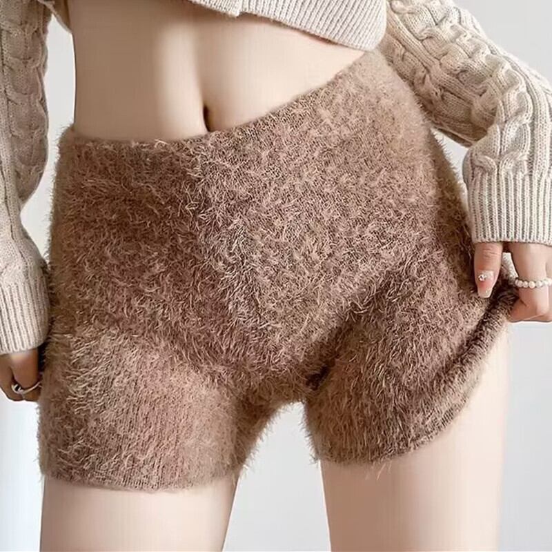 毛糸風 ニットショートパンツ レディース モヘア風 ふわふわ ハイウエスト 美脚 セクシー ショーパン 韓国風 ストリート ブラウン