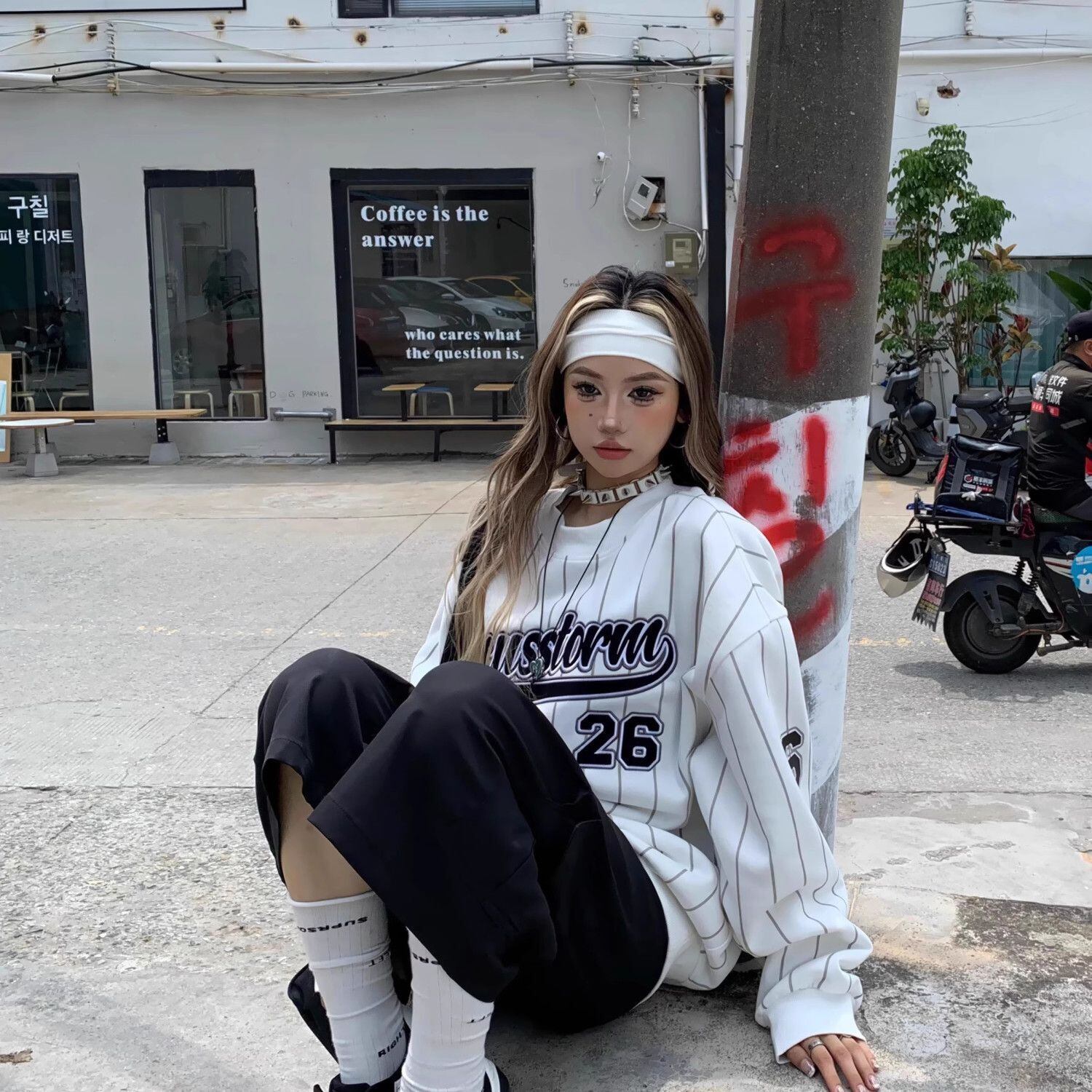 【秋新作】ストリート風 ビッグロゴプリント スウェット トレーナー 長袖 レディース メンズライク ゆったり カジュアルトップス ホワイト