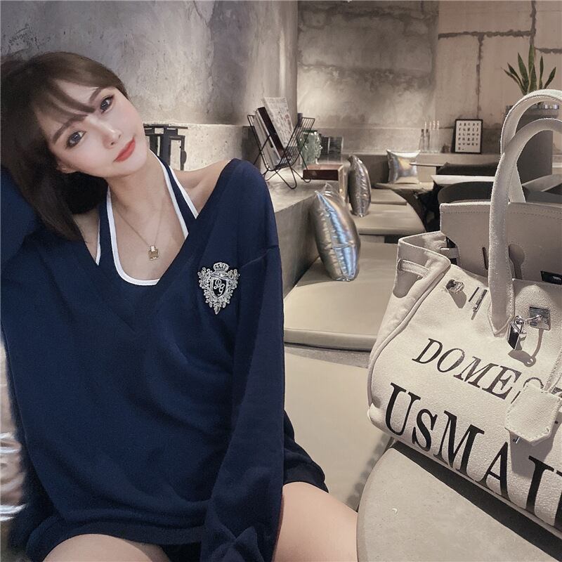 ゆったりシルエットの長袖トップスと、セクシーなキャミソールがセットになった嬉しいアイテムです。