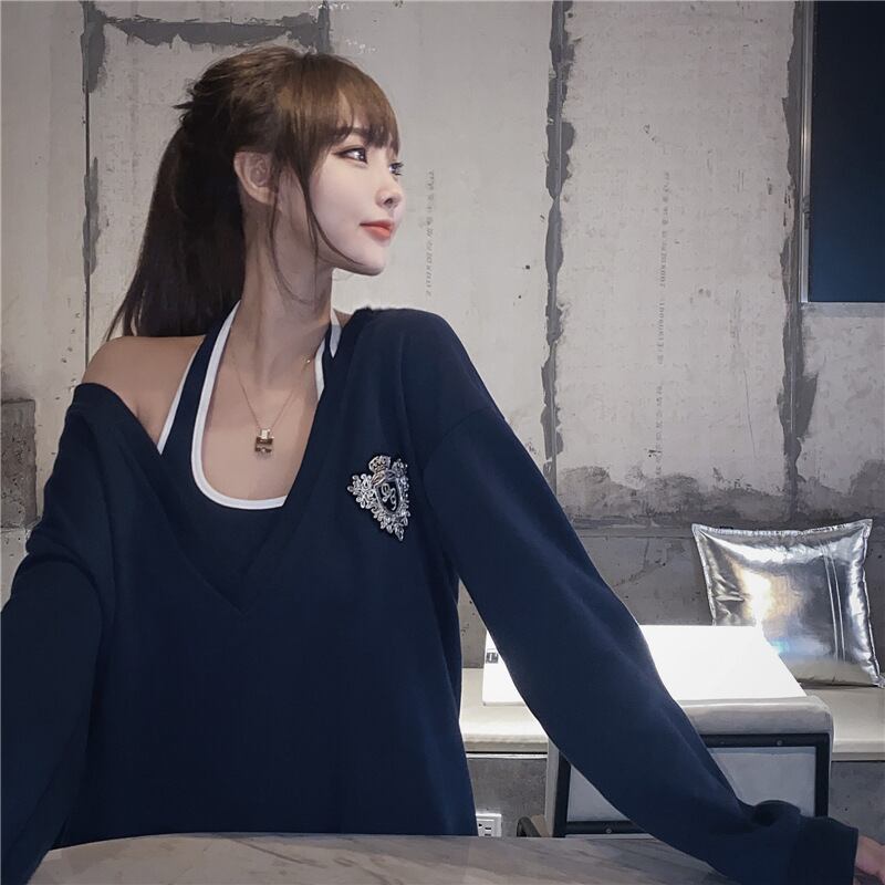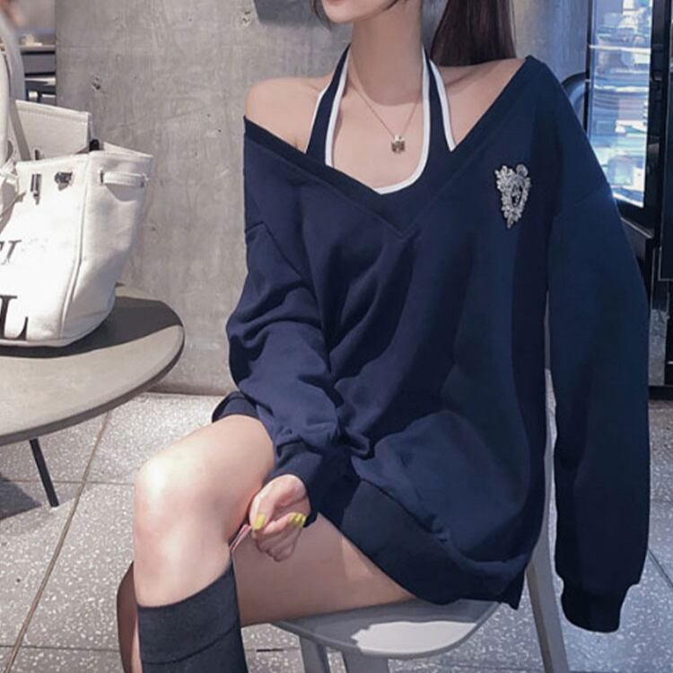 レディース セットアップ スウェット 2点セット 長袖 トップス キャミソール付き ゆったり オフショルダー 春秋 新作