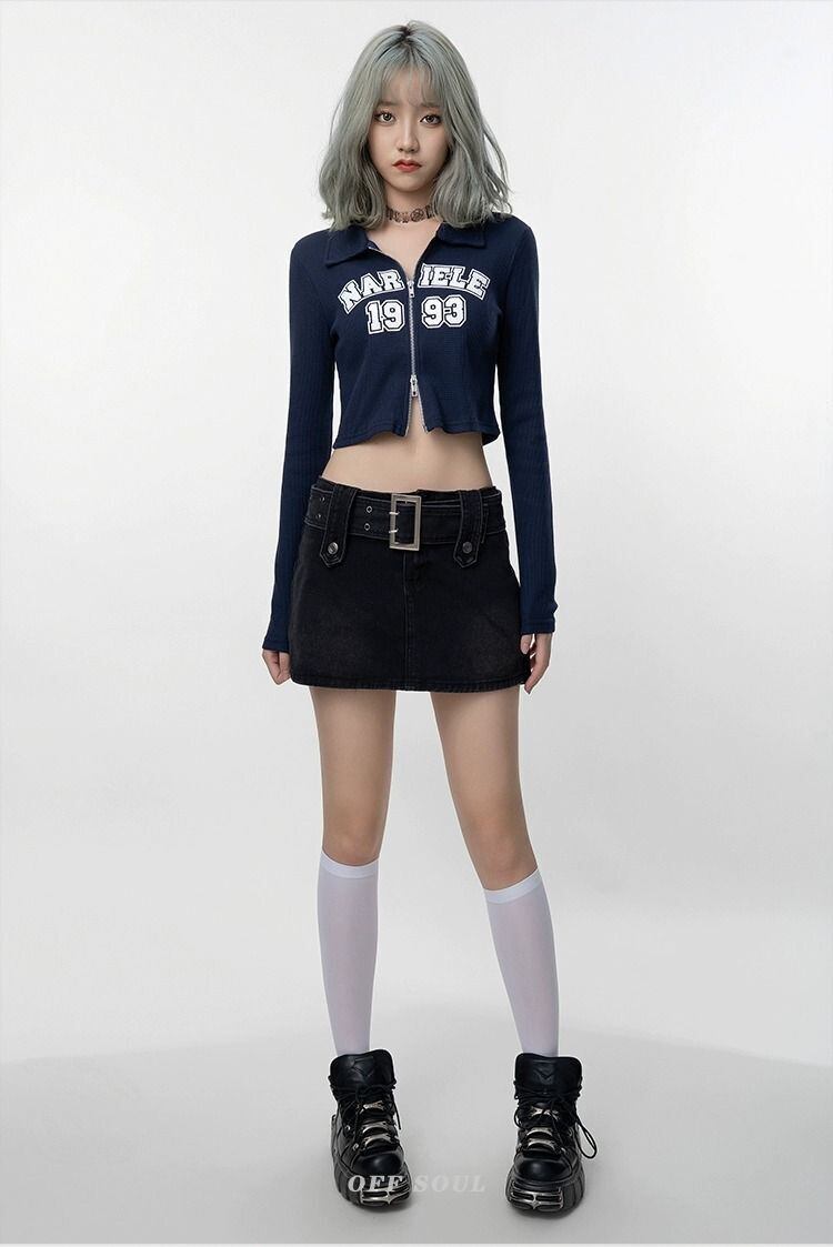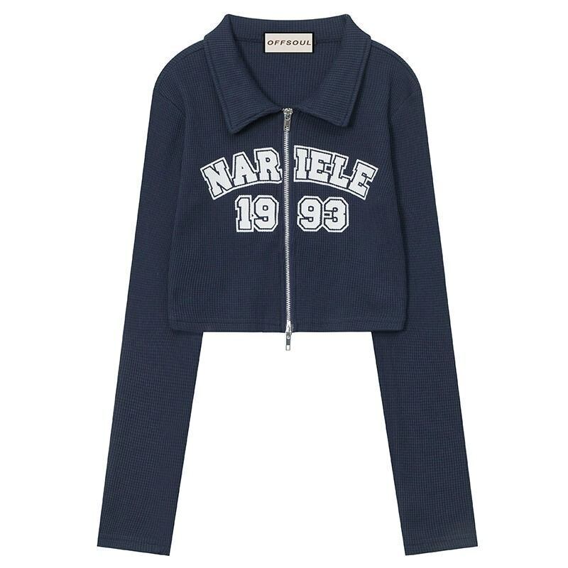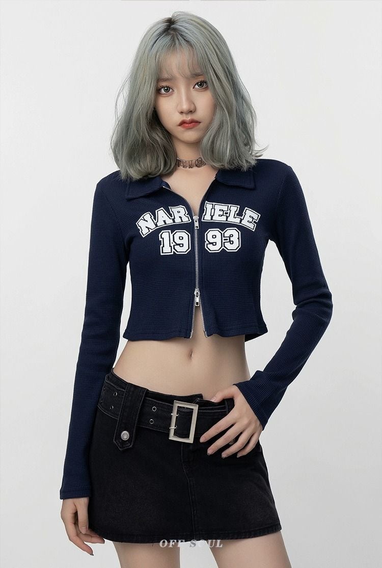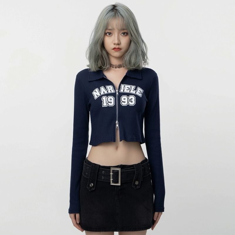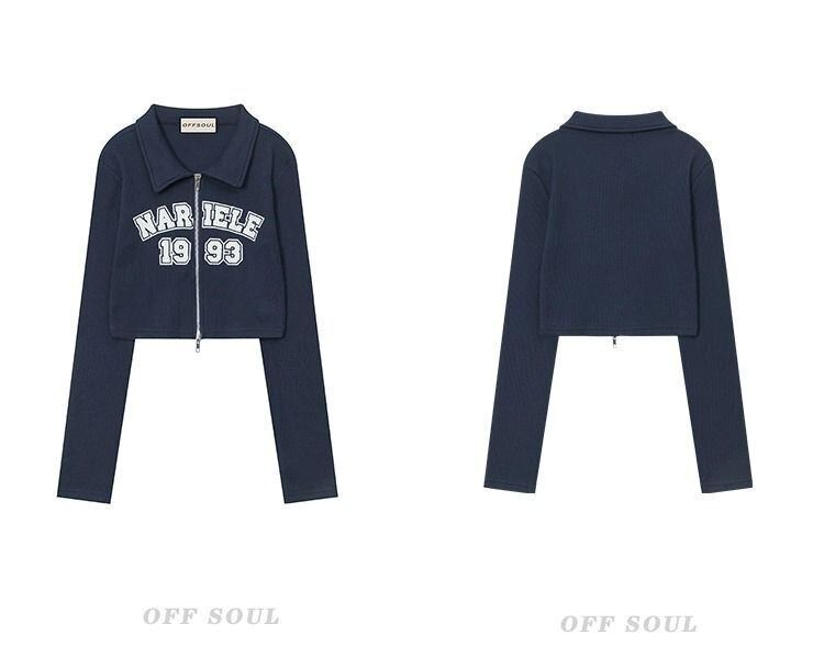 韓国インスタ系 クロップド丈 ジップポロ 長袖トップス レディース 秋新作 タイトシルエット ヘソ出し カジュアル おしゃれ
