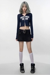 クーポン配布中!実質送料無料になる800円OFFクーポン!決済前にクーポンコード:XMAS800を入力してお得にGetしてね!秋のトレンドコーデにぴったりの、美式辣妹風ジップポロトップス。